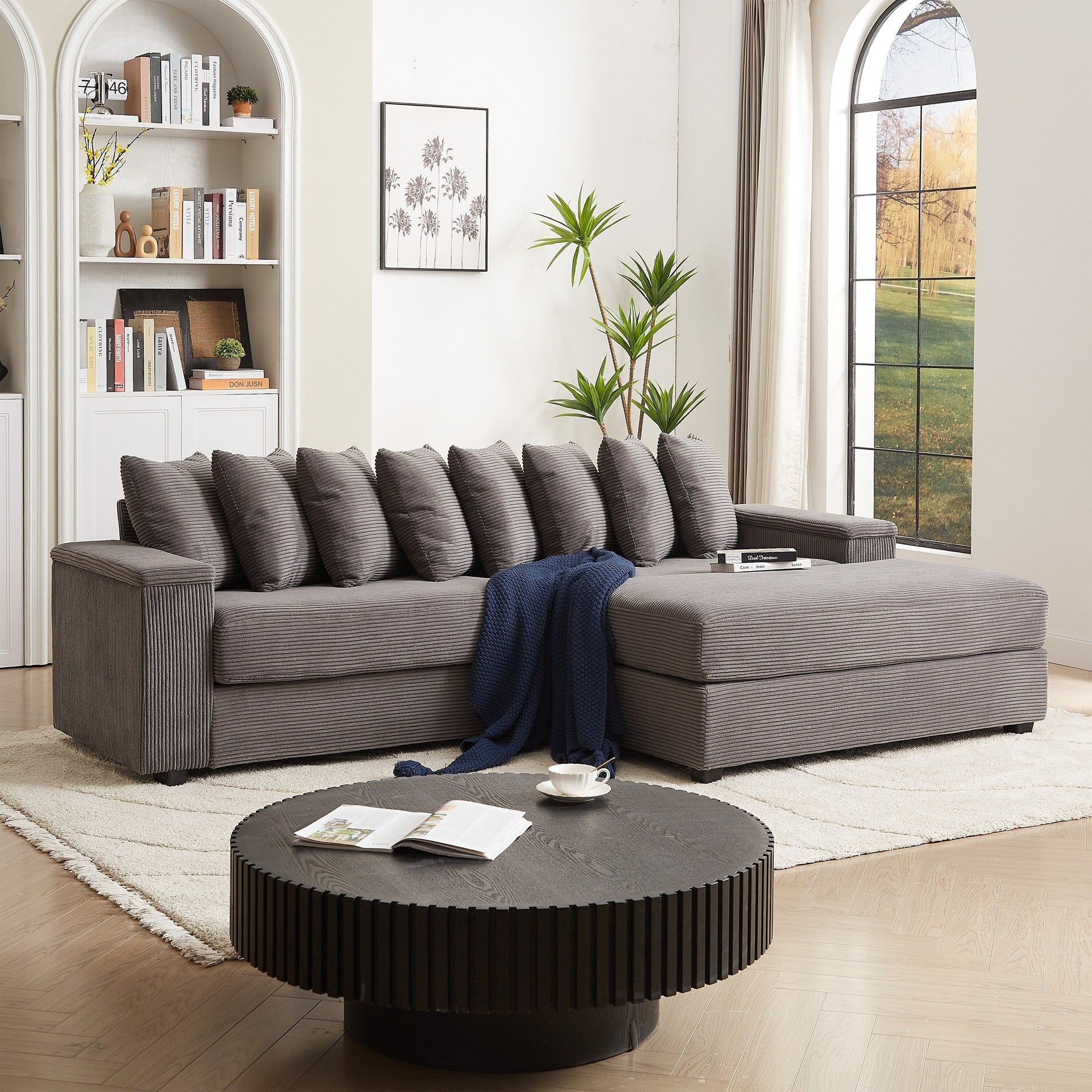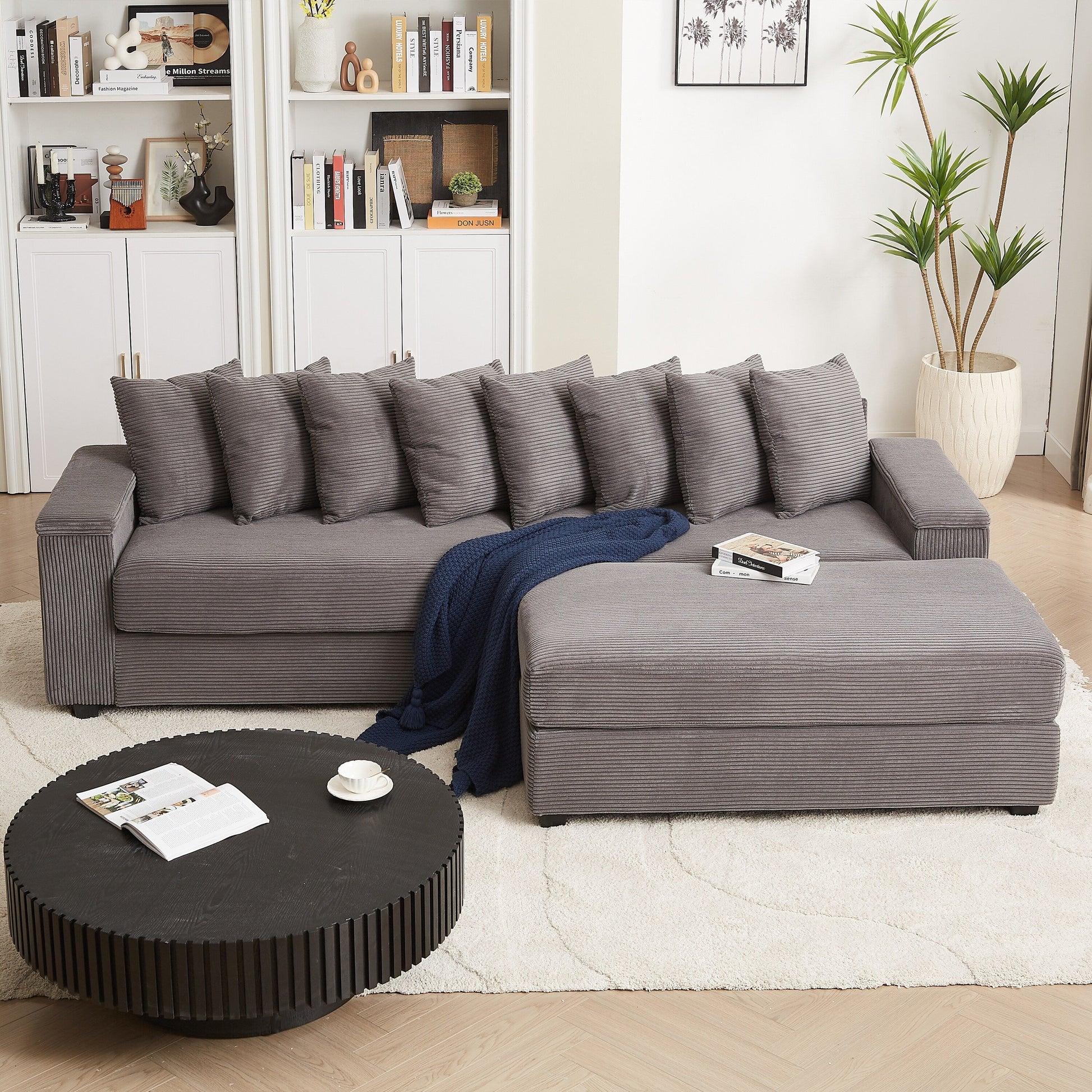 104-In Oversized Large Corduroy L Shaped Sofa with Chaise