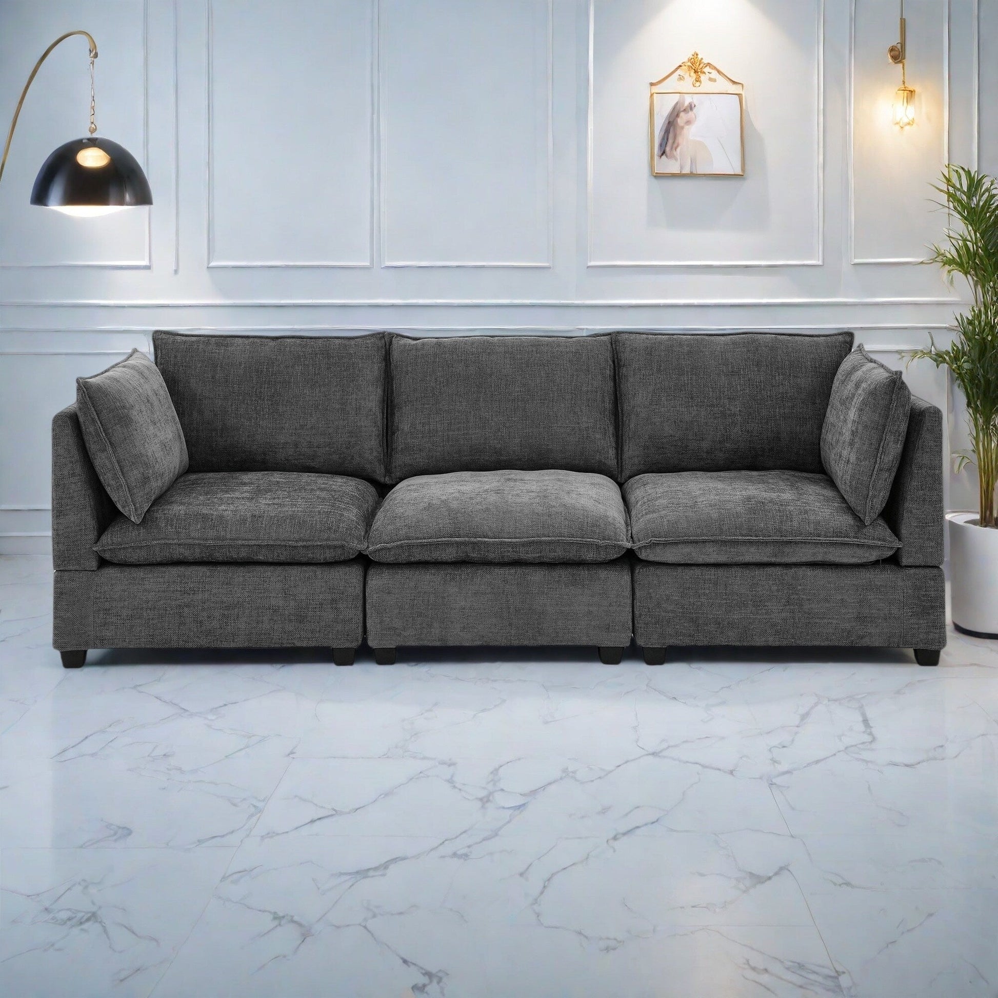 This chenille cloud sofa offers a perfect balance of contemporary design, deep cushioned comfort, and lasting durability. Whether you're hosting guests or curling up for a quiet afternoon, it's your go-to lounging companion.