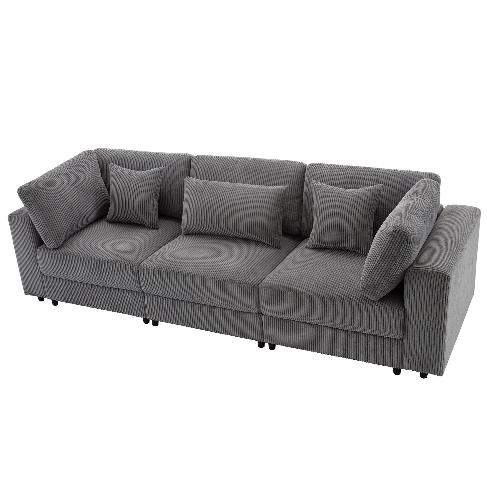 105 Corduroy Upholstered 3-seater Sofa with Removable Back Cushions and 5 Pillows for Living Room