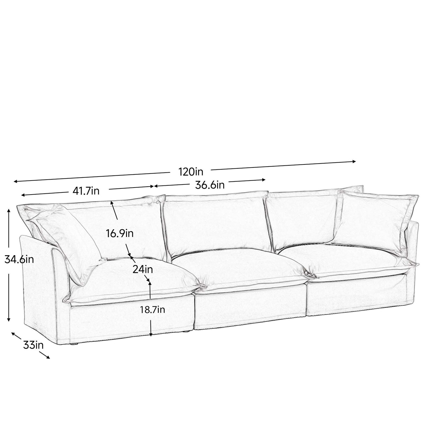 120 Chenille 4-Seater Sofa with Soft Multiple Big Pillows for living room and bedroom