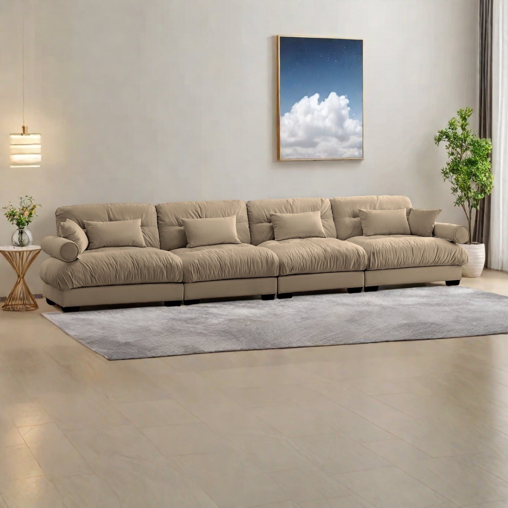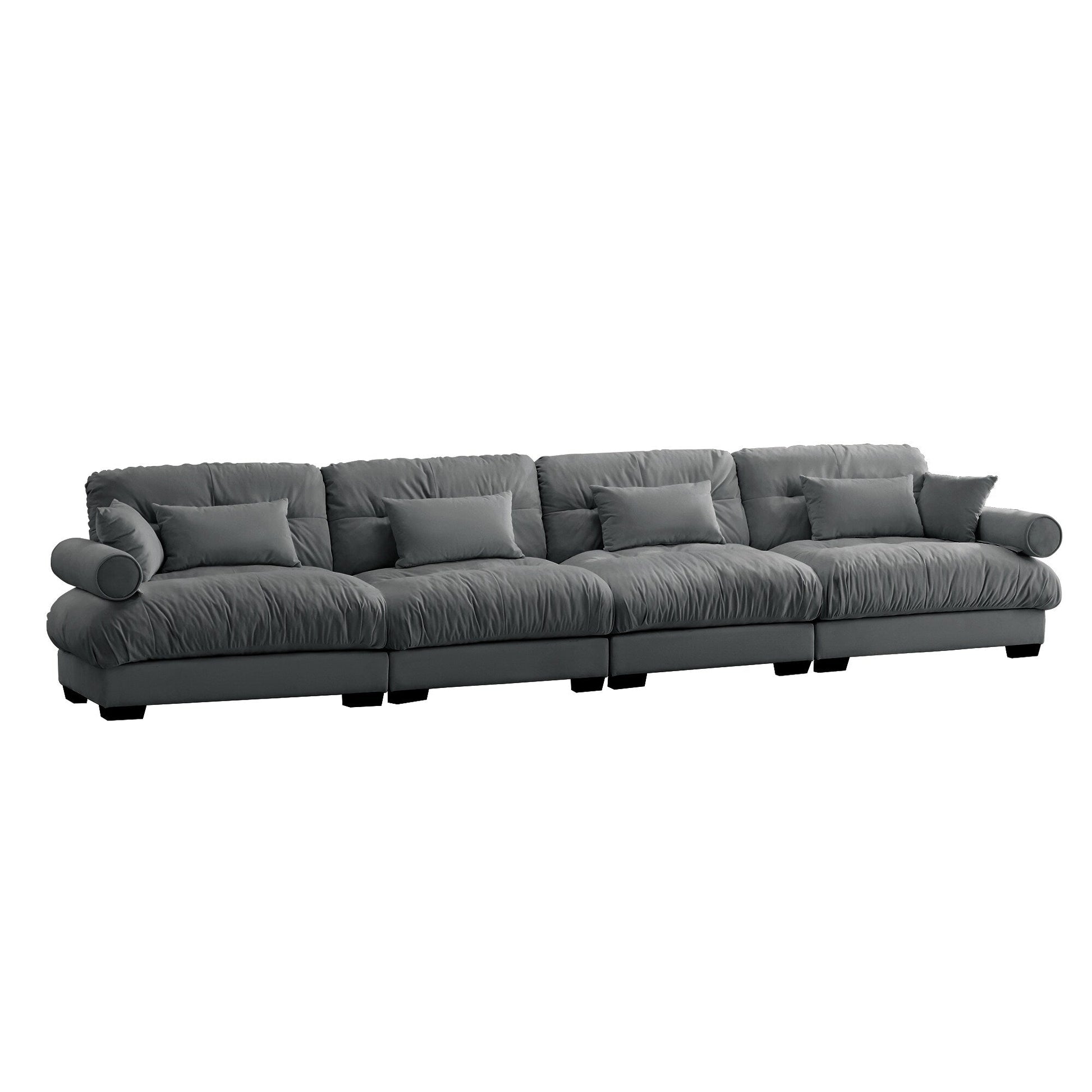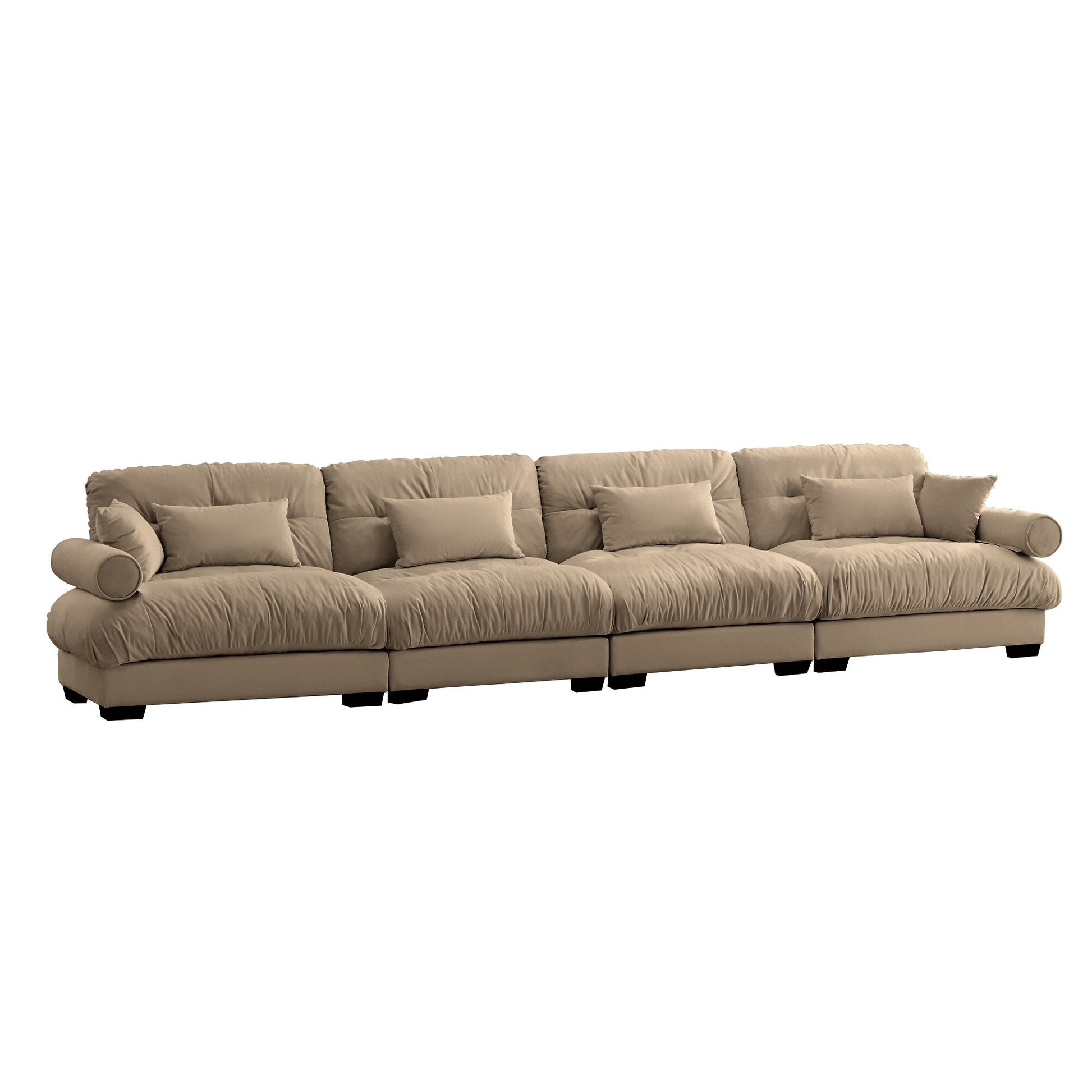 166Velvet 4-Seater Sofa with Bolster Armrests, High-Resilience Sponge Cushions