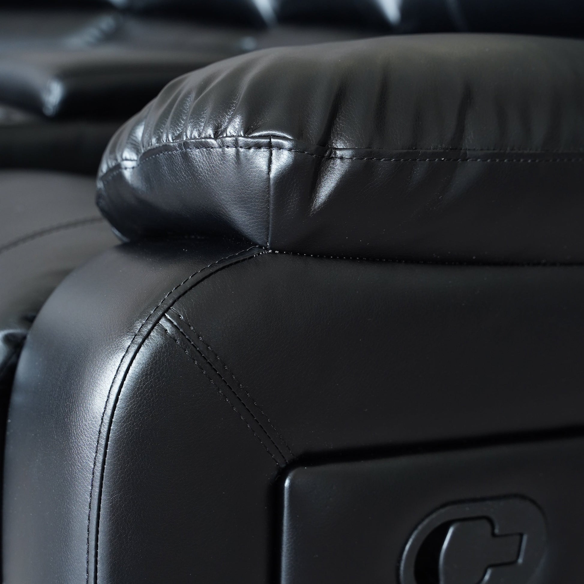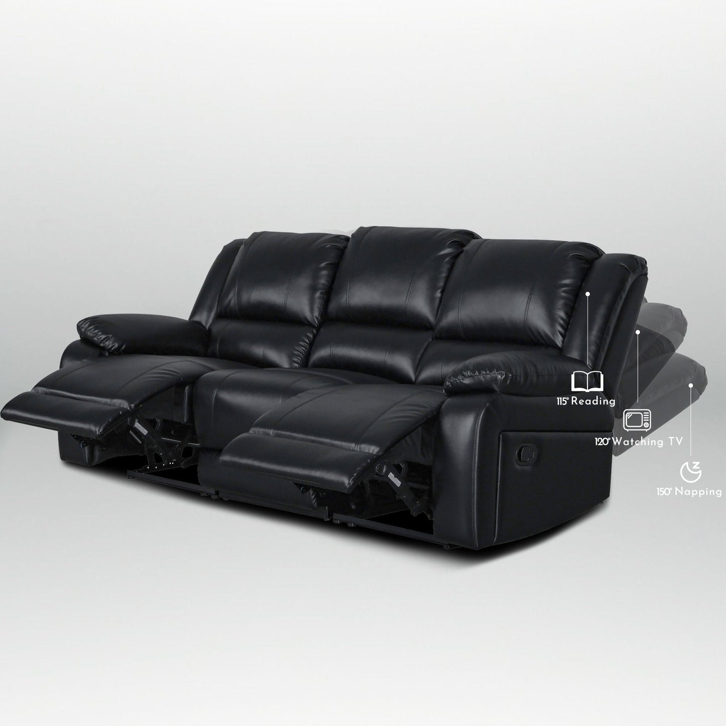 Add a touch of modern style to your living room with this stunning manual recliner sofa set. Upholstered in the finest faux leather, this couch offers a comfortable and cozy seating experience for you and your guests. Featuring a sinuous spring with foam for extra cushioning, this sofa set is perfect for watching movies or relaxing with a good book. The recliner mechanism provides even more comfort, with a single recliner on each end. This contemporary living room set is a trendsetter in every regard and is sure to impress.The loveseat contains a single recliner on each end,1 center console for easy storage with 2 built-in convenient cup holders.