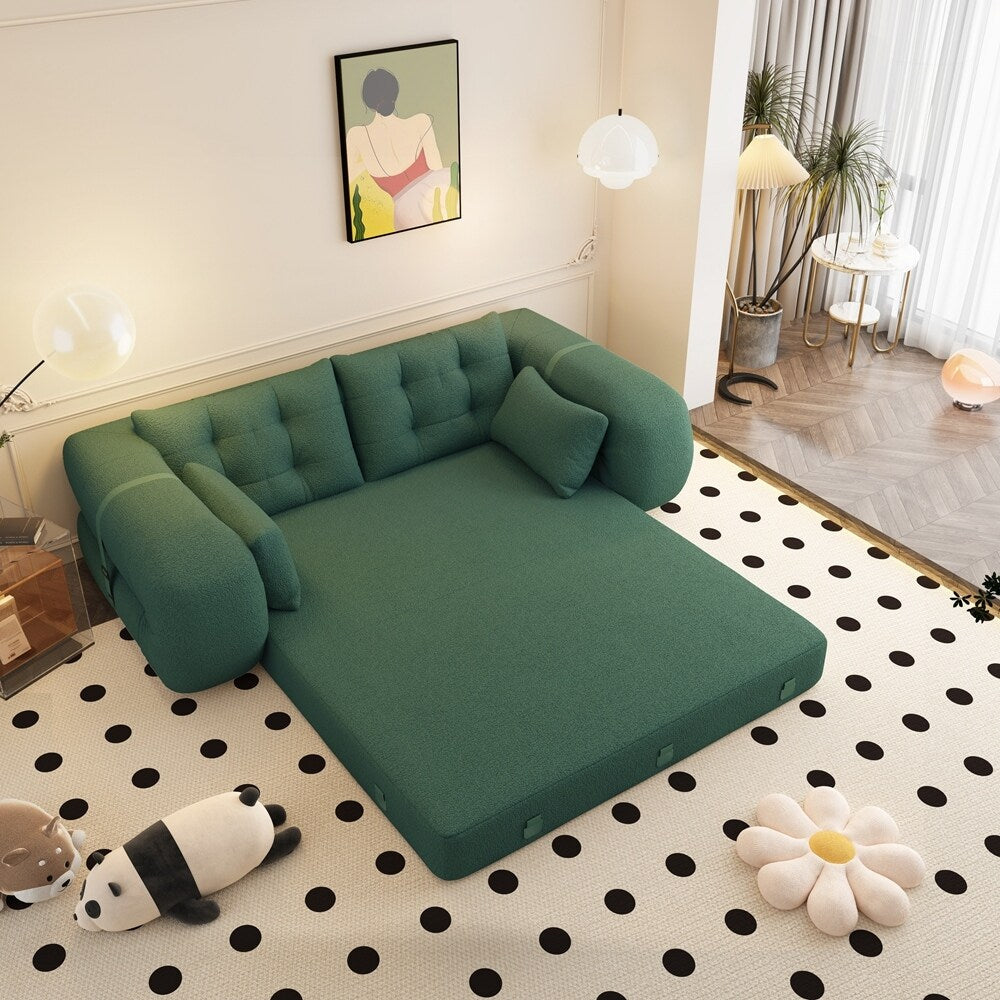 - Premium Comfort: Upholstered in soft, breathable Teddy fabric, this convertible sofa bed features high-density foam that effectively alleviates pressure while providing robust support. The accompanying plush pillows enhance your lounging experience, ensuring relaxation like never before.Perfect for the whole family, it's a cozy haven that's as kind to sensitive skin as it is stylish.