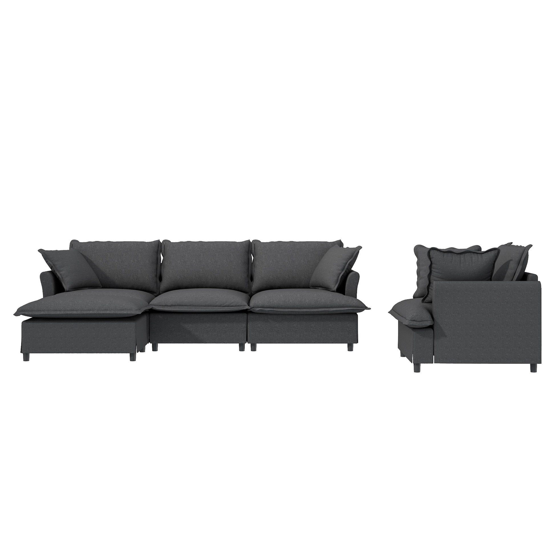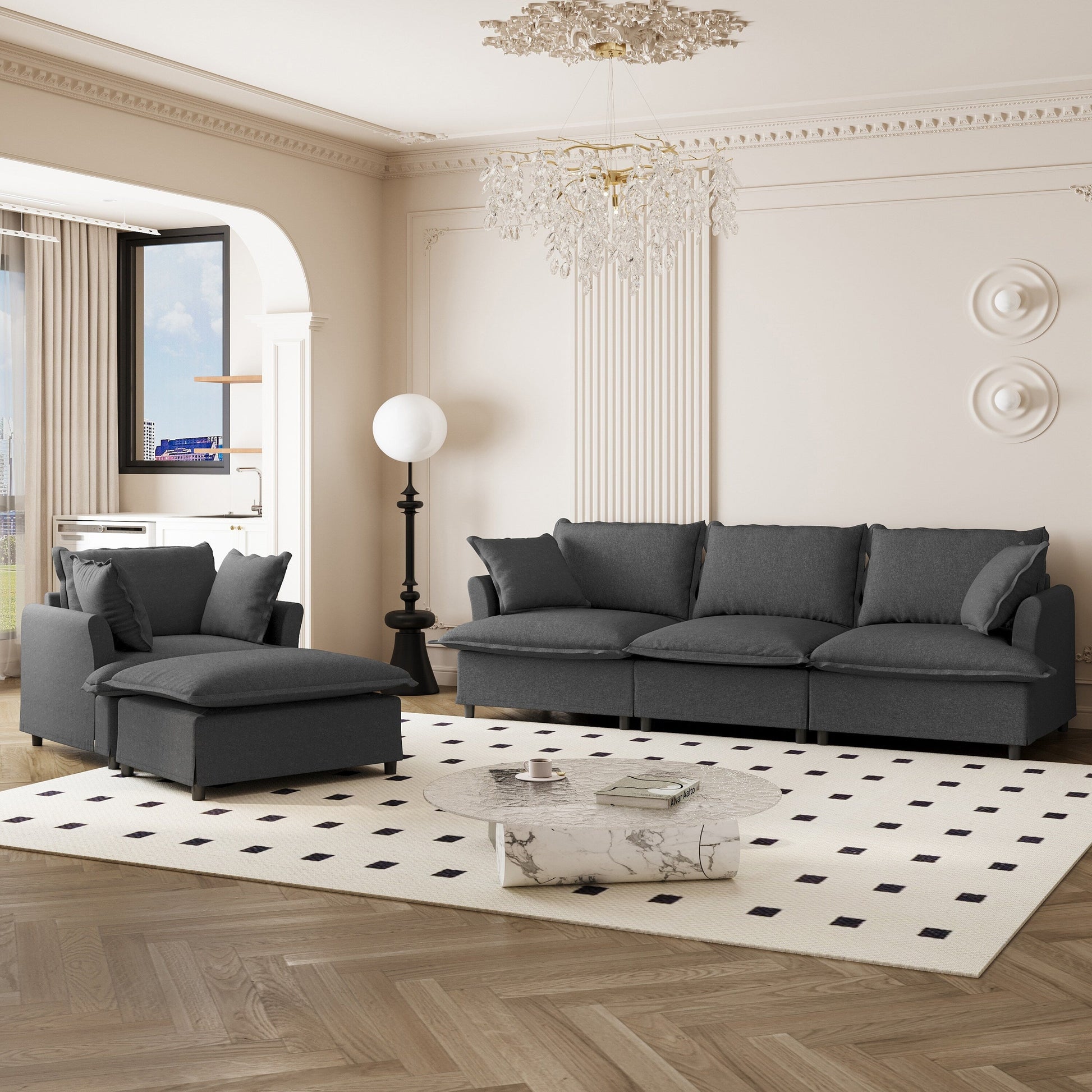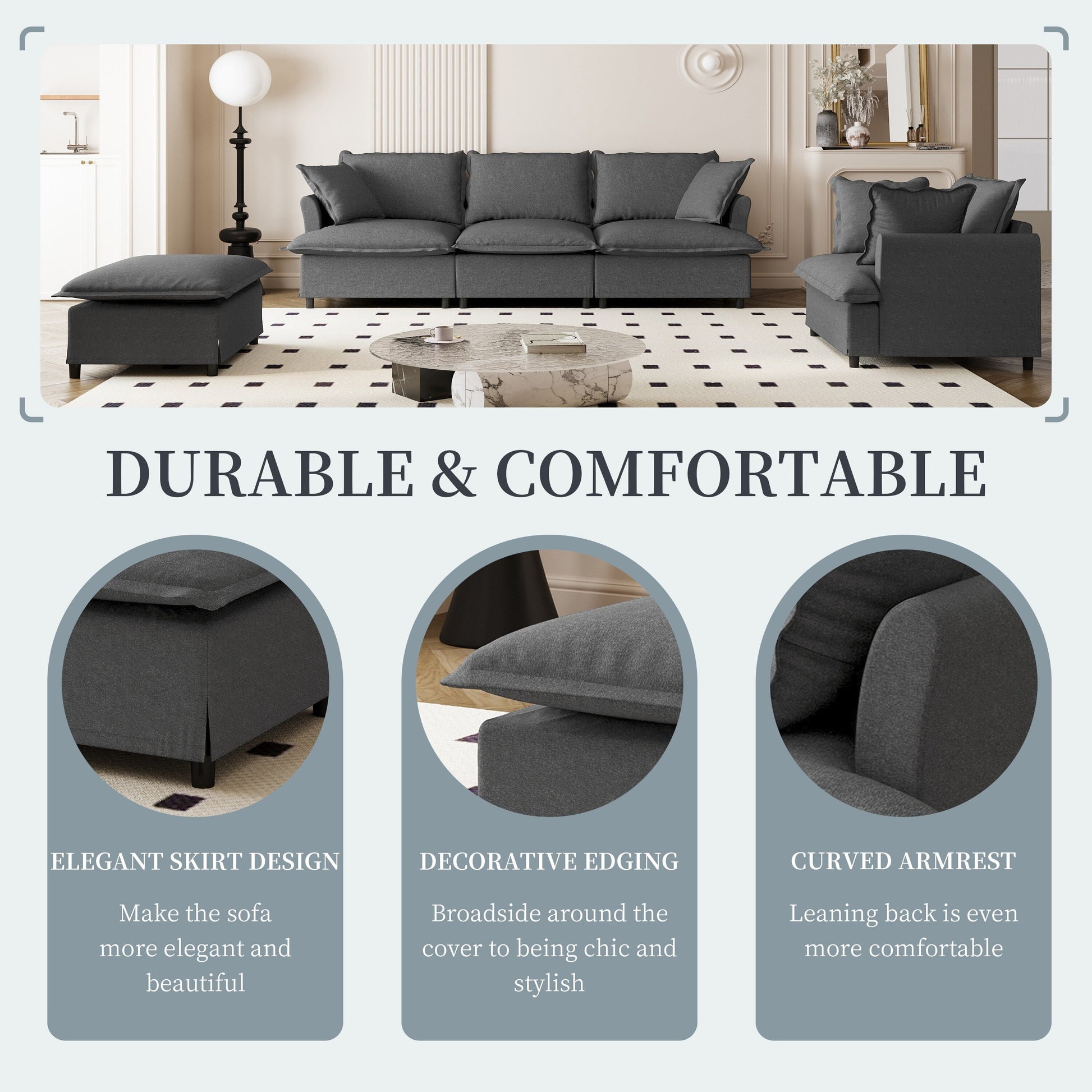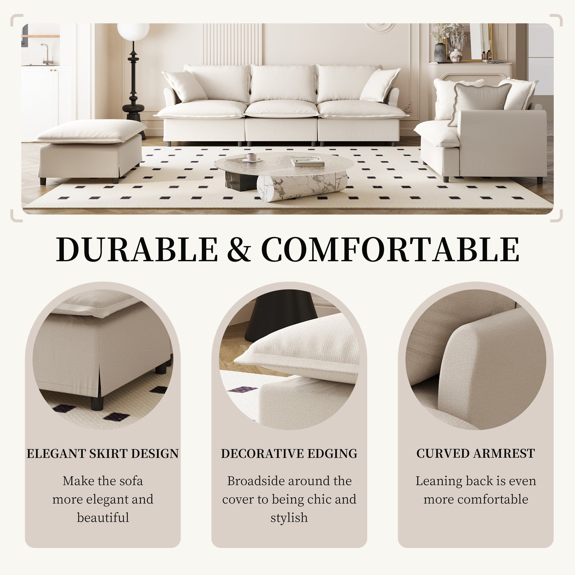 Modular Design: The sofa features a versatile modular design, consisting of three key pieces: a three-seater, a single seat, and an ottoman. These modules can be freely combined to create various seating arrangements, allowing you to customize the layout to suit your specific space. Additionally, individual modules can be purchased separately, giving you the flexibility to expand or adjust the configuration as needed.