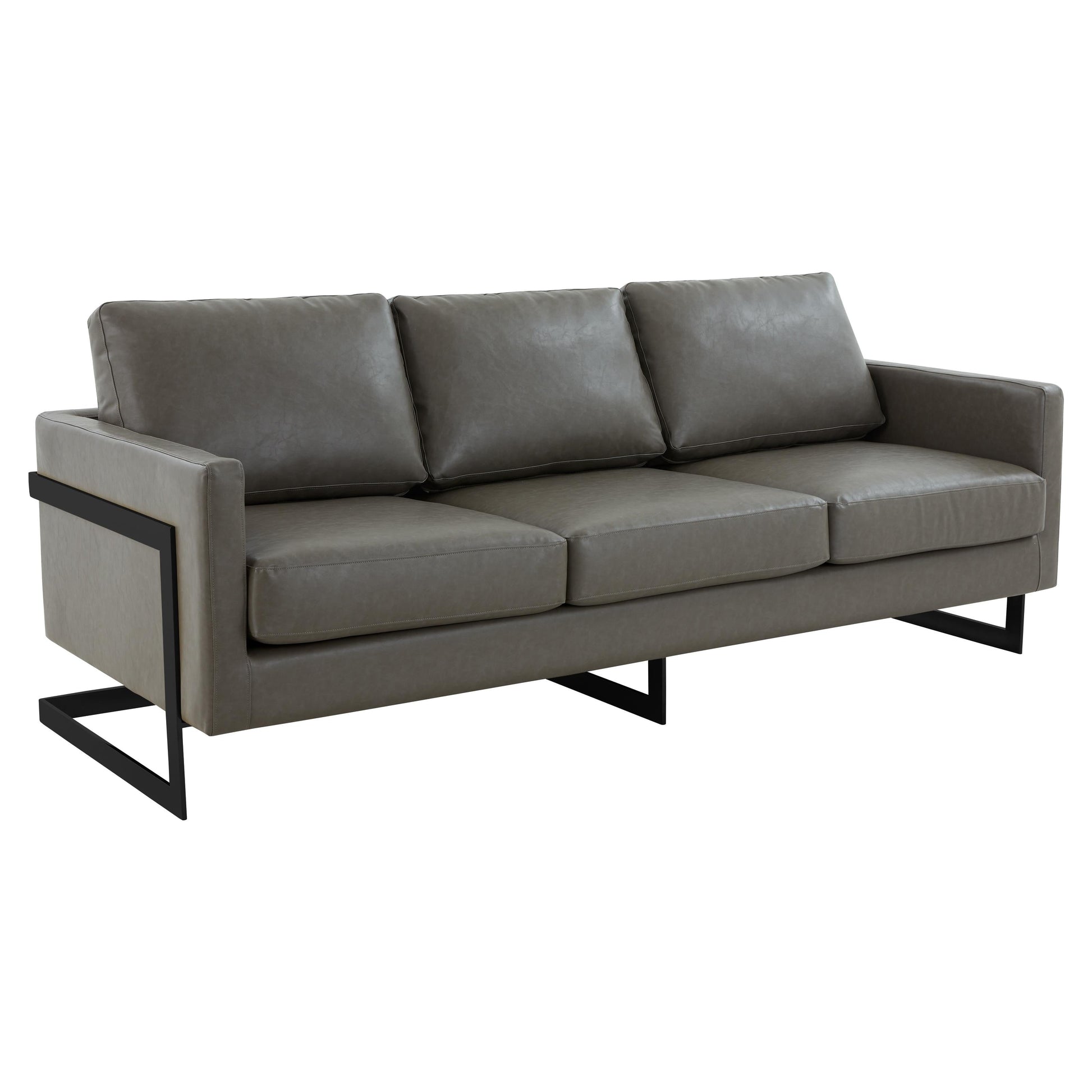 Introducing the Lincoln Series 3-seater sofa by LeisureMod, a perfect blend of modern design and comfort. This sofa has a sleek look with straight edges and unique geometric legs. Upholstered in luxurious leather to match your decor. The couch features soft seats and back cushions for ultimate comfort and built-in armrests for added support. Its strong stainless-steel base ensures durability and keeps the sofa looking elegant over time. Protective floor pads prevent scratches and damage to your floors. Ideal for living rooms, offices, lounges, and waiting areas, this sofa provides comfortable seating for family gatherings, movie nights, or casual lounging. It also offers a welcoming spot for clients and visitors in professional settings. Maintenance is easy with a simple wipe-down to keep it fresh and clean. Arriving fully assembled, the Lincoln Series sofa is ready to enhance your space immediately with its stylish design and hassle-free setup.