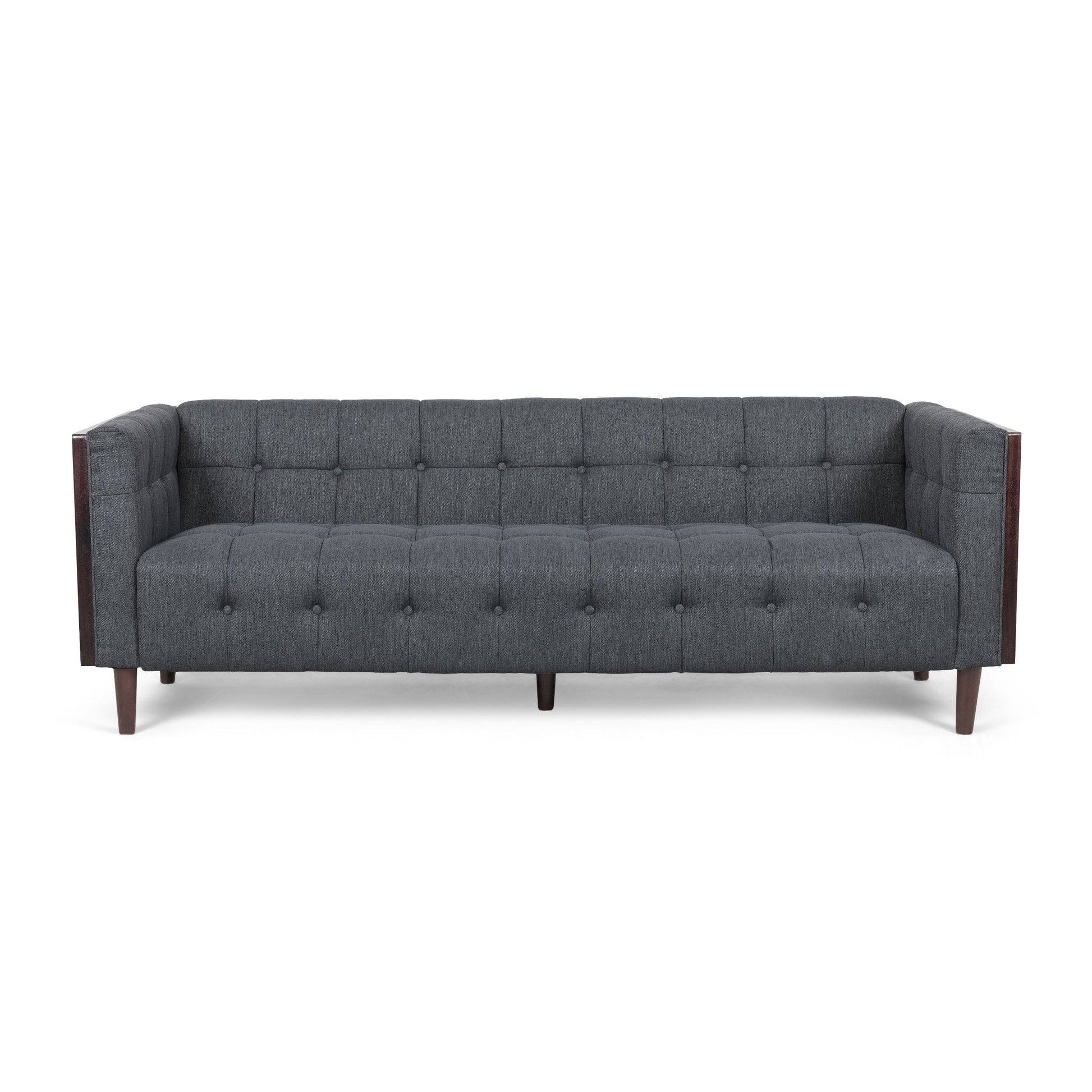 - Contemporary Design: Featuring stunning button tufted waffle stitching, a wood frame, and tapered legs, our sofa offers the look, feel, and design of a truly contemporary piece with a touch of mid-century charm. With a minimalistic yet refined structure, this piece brings out a simplistic style that emphasizes comfort and functionality.