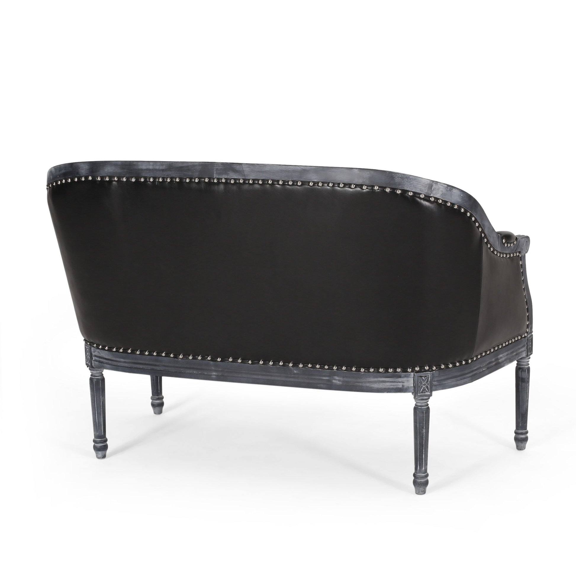 49.5 Faux Leather Loveseat Sofa with Turned Legs and Nailheads for Living Room