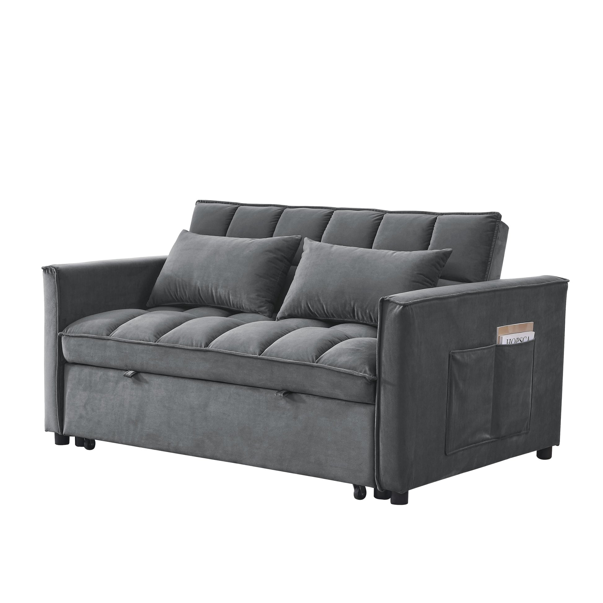 53.94 Velvet 3 in1 Loveseat Pull-Out Sofa Bed withTwo Side Pockets and Adjustable Backrest for Living Room