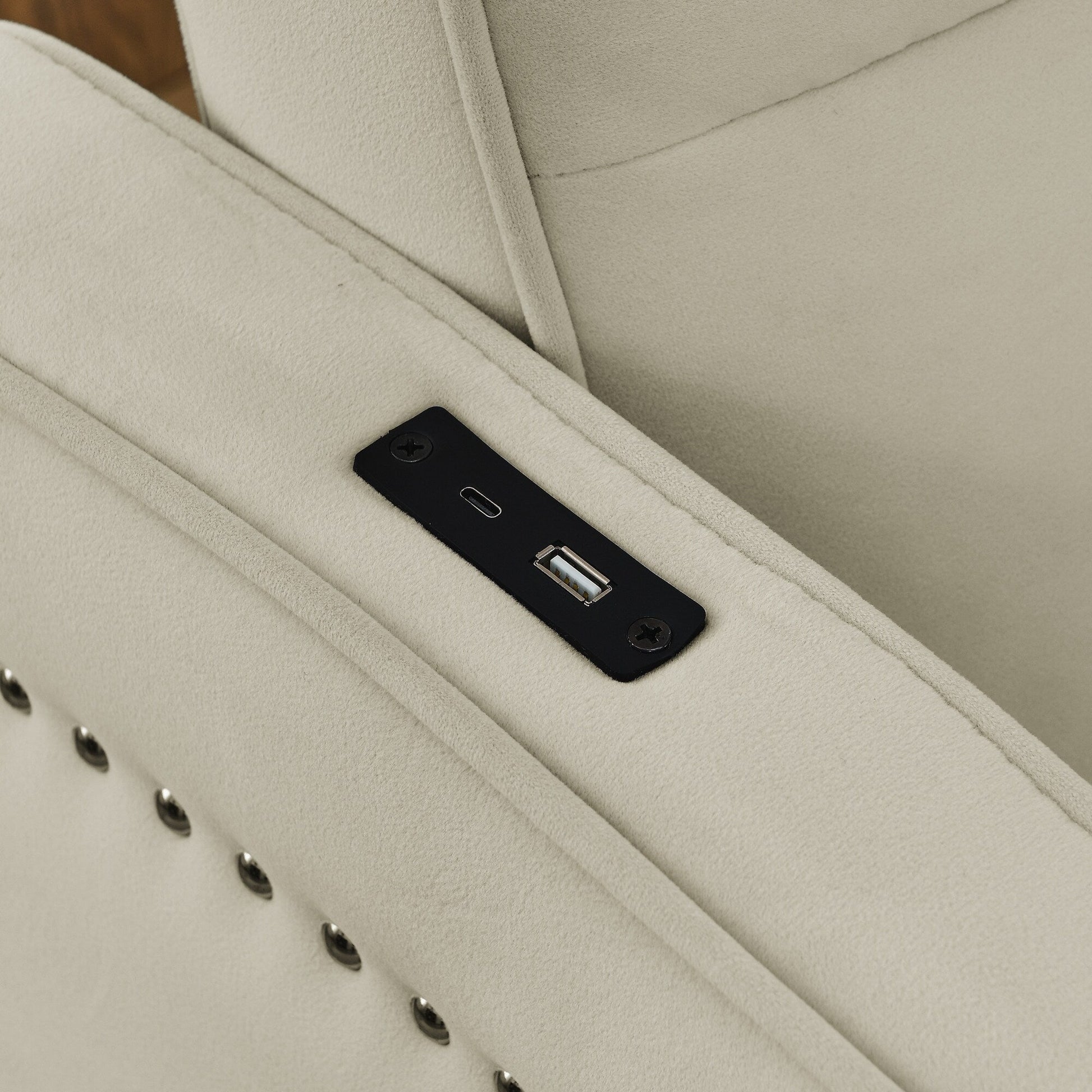 53 Foam Adjustable Loveseat Sofa Bed with Pull-Out Bed, USB/Type-C Charging, Copper Nail Trim, and Arm Storage Pockets