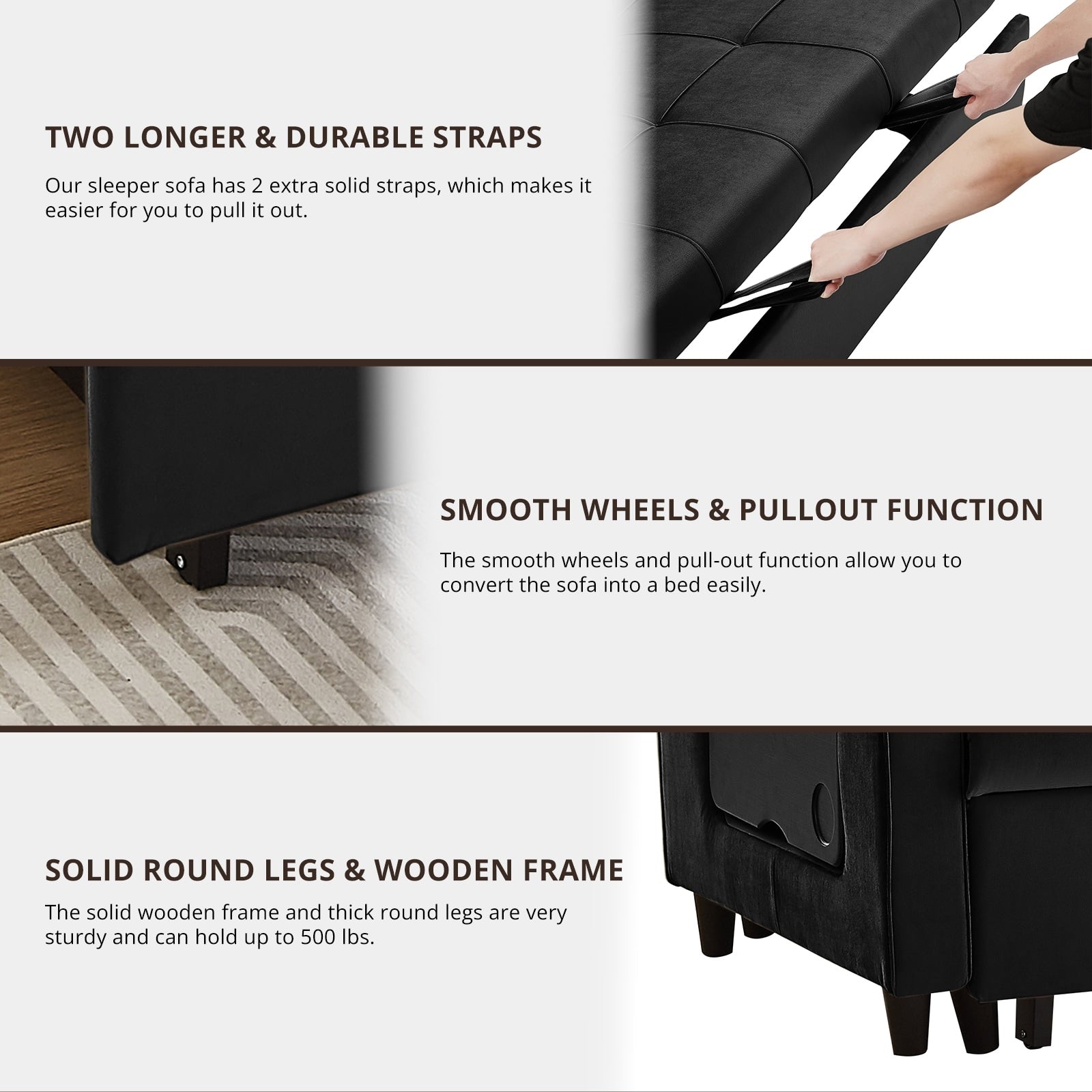 - Versatile 3-in-1 Functionality: Experience the flexibility of the Convertible Sleeper Pull, effortlessly transitioning from a chic sofa to a cozy bed and a relaxing chair. Its adaptable design caters to various needs, making it an ideal solution for any living space.