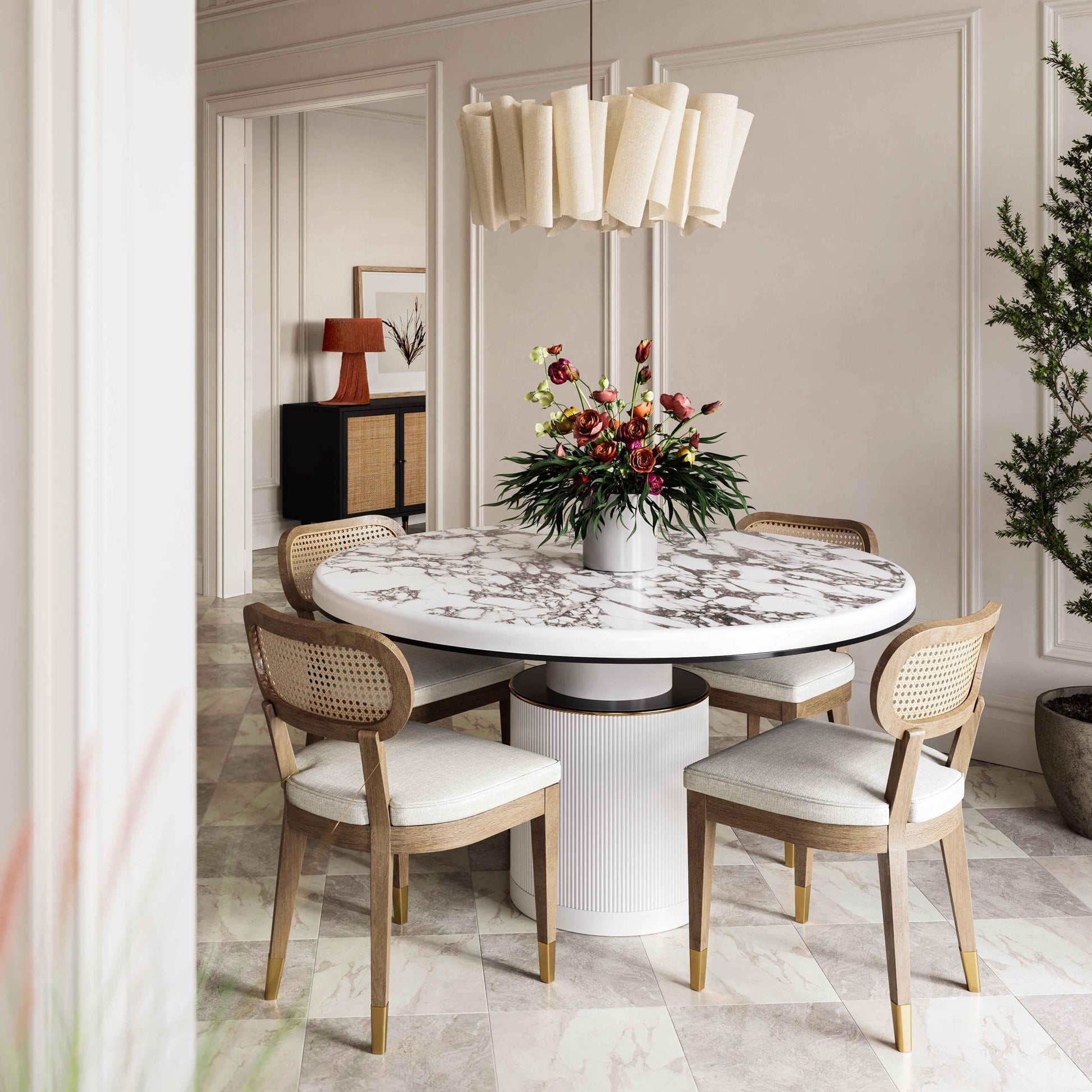 La chaise de salle à manger Miami-Mode idéale est arrivée ! Cosette allie notre amour pour les matériaux naturels, les formes du milieu du siècle et les tons neutres. Nous avons méticuleusement peaufiné la forme de Cosette jusqu'à ce qu'elle soit parfaite, garantissant un confort optimal et des proportions parfaites. Le cannage est superbe, et les pieds à embouts en laiton ajoutent une touche d'élégance supplémentaire !