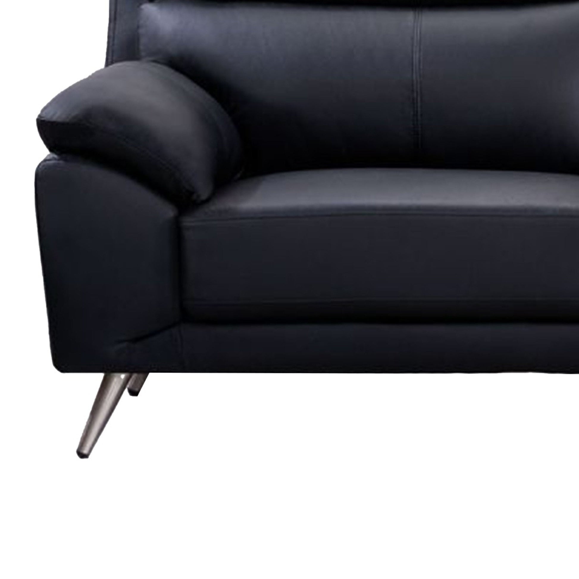 This sofa?extends the?sophisticated luxury?of the loveseat into a spacious haven. Imagine sprawling out on the?black top grain leather?cushions,?enjoying the comfort of the?high density foam?and the sleekness of the?high polished stainless steel legs. This?contemporary sofa?is ideal for entertaining or simply relaxing in style. Check out our Justin collection for more options.?