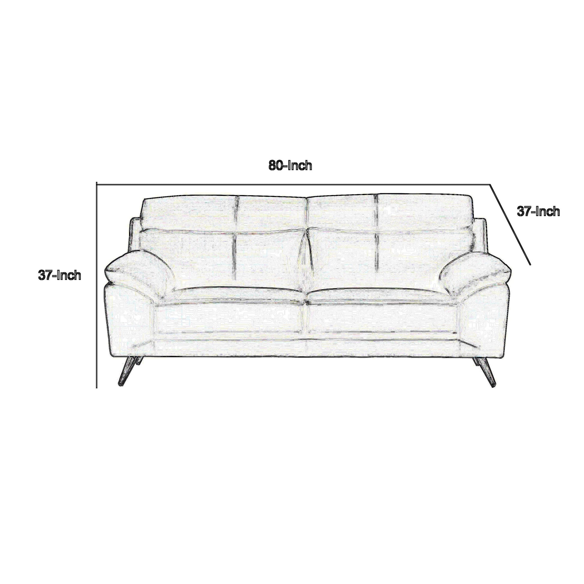 Justin Sofa, Black Top Grain Leather, Foam Cushions, Steel Legs, 80 Inch