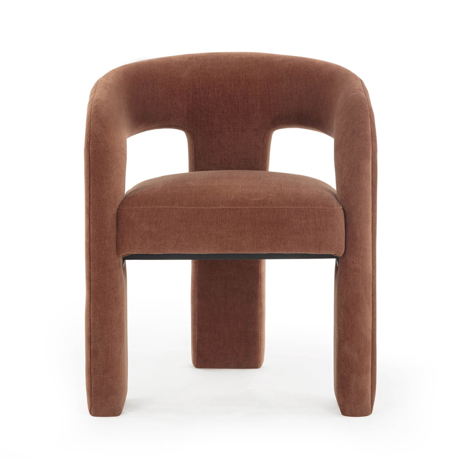 La chaise de salle à manger et le tabouret de bar Malone allient confort et style dans un tissu chenille taupe naturel ou rouge rouille, doux et texturé, conçu pour résister aux assauts du quotidien. Avec leurs accoudoirs rembourrés, leur dossier incurvé et leur assise moelleuse indéformable, ils apportent une touche de simplicité et de raffinement à toute salle à manger.