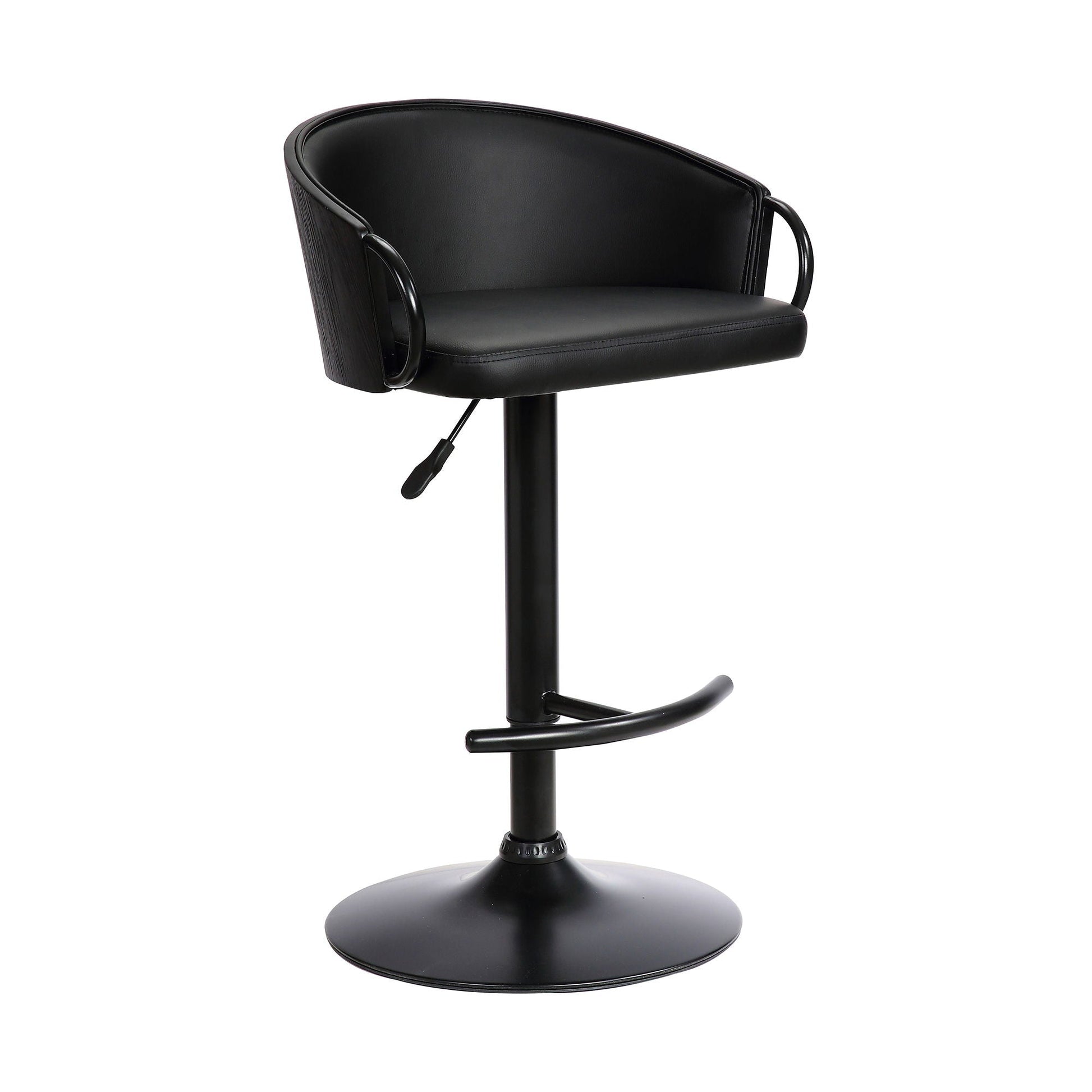 D'un design élégant et raffiné, le tabouret de bar Armen Living Montego est doté d'une assise confortable en mousse haute densité recouverte d'un somptueux similicuir. Son dossier arrondi et arqué, caractéristique, enveloppe l'assise et se soulève des deux côtés pour un soutien accru. Sous celui-ci se trouve un repose-pieds circulaire, fabriqué à la main, en métal thermolaqué noir. Avec son design résolument moderne, mais inspiré du rétro, le Montego s'intègre parfaitement à tous les intérieurs, qu'il s'agisse d'un bar de cuisine pivotant des années 60 ou d'un bar contemporain. Il est équipé d'un vérin à gaz pour une hauteur variable et une rotation à 360 degrés, ainsi que d'une base circulaire robuste qui assure la stabilité de l'ensemble. Le tabouret Montego est disponible avec un revêtement en similicuir noir et, au choix, des touches de métal noir ou doré.