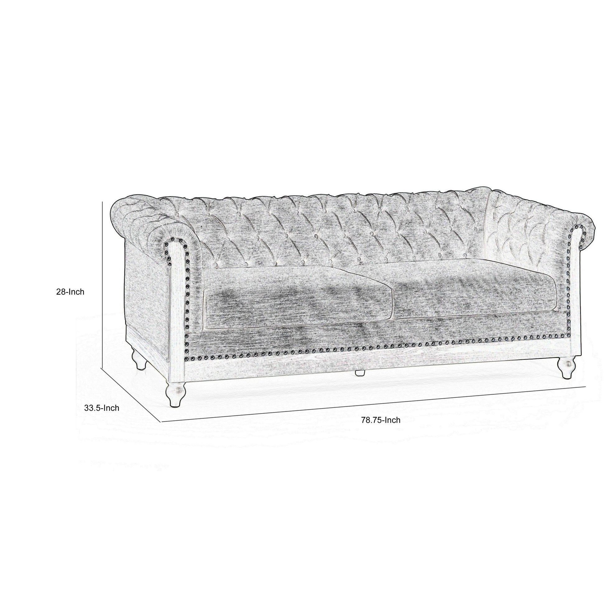 Ober Sofa, Rivets Chesterfield Button Tufted Gray, 86 Inch, Taupe Brown