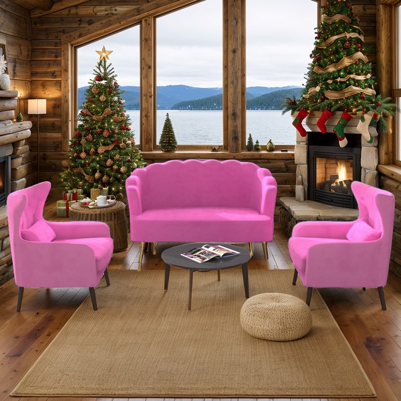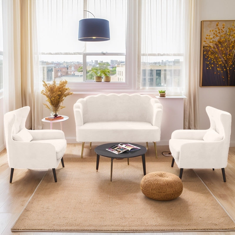 Velvet Tuft Thick Cushion Metal Legs Loveseat Two Accent Chairs
