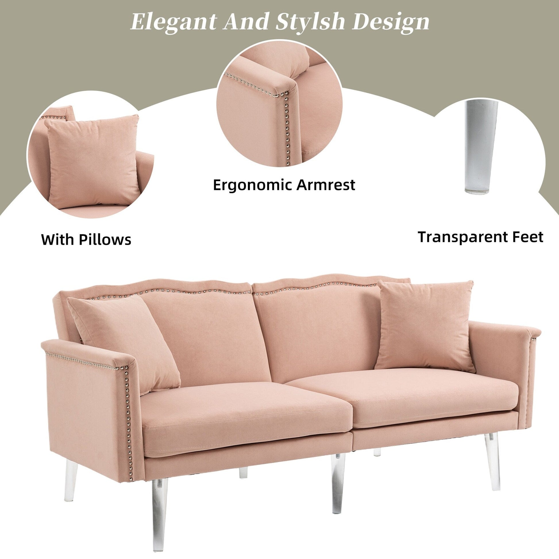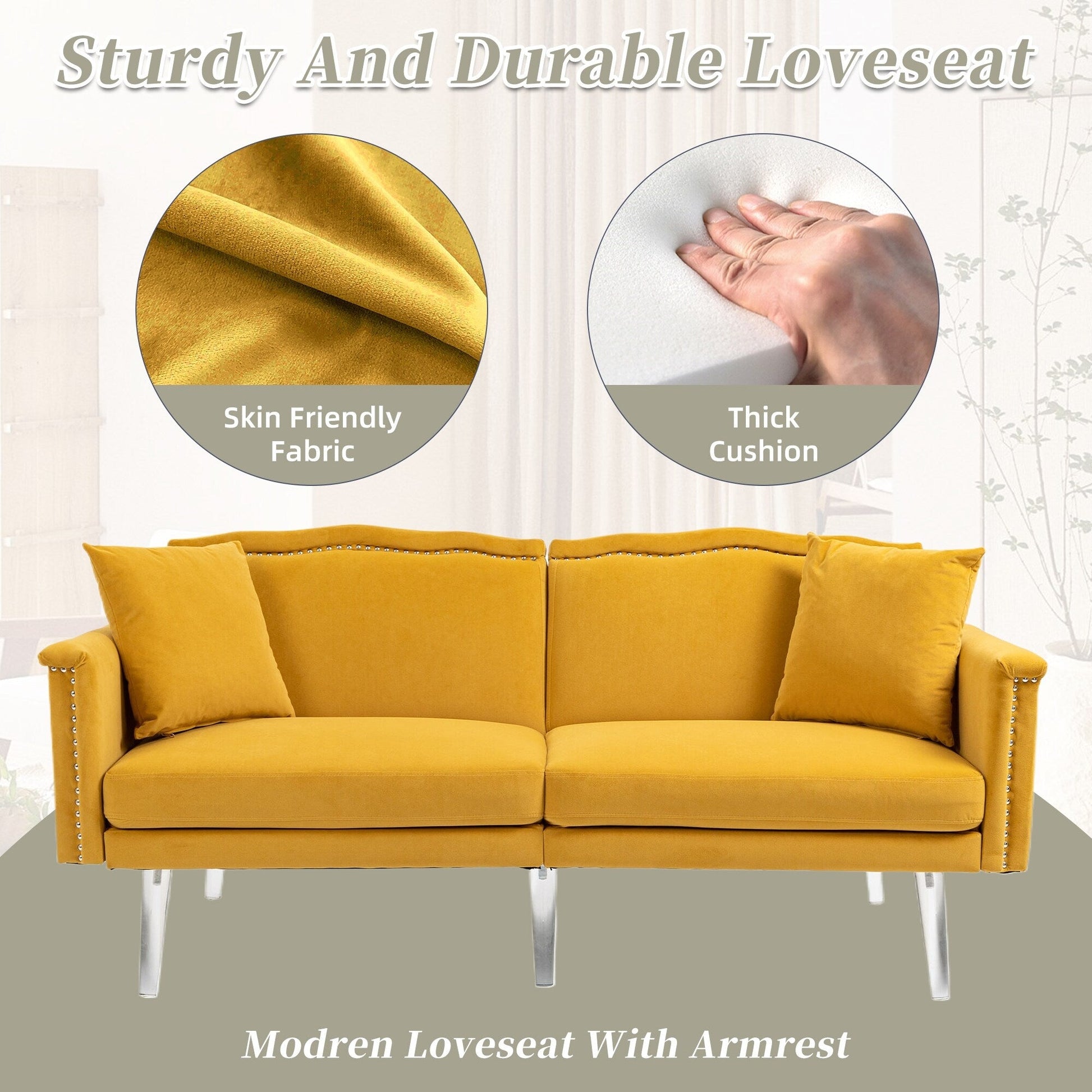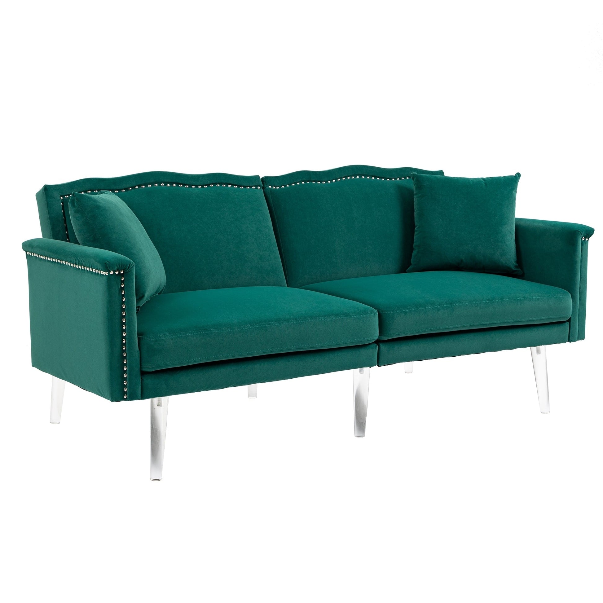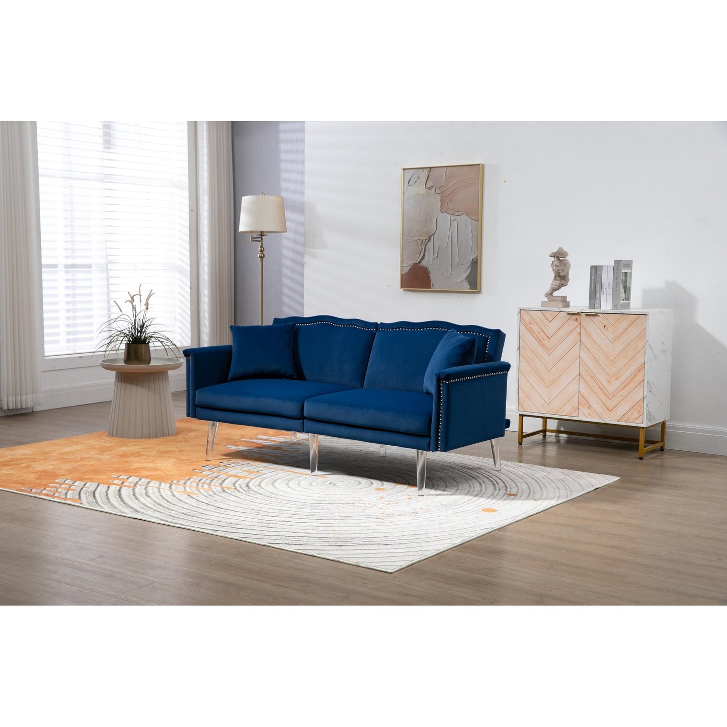Velvet Upholstered Nailheads Loveseats Sleeper Sofa With Acrylic Feet