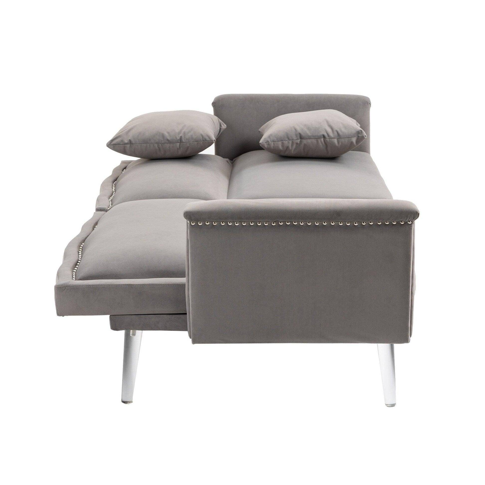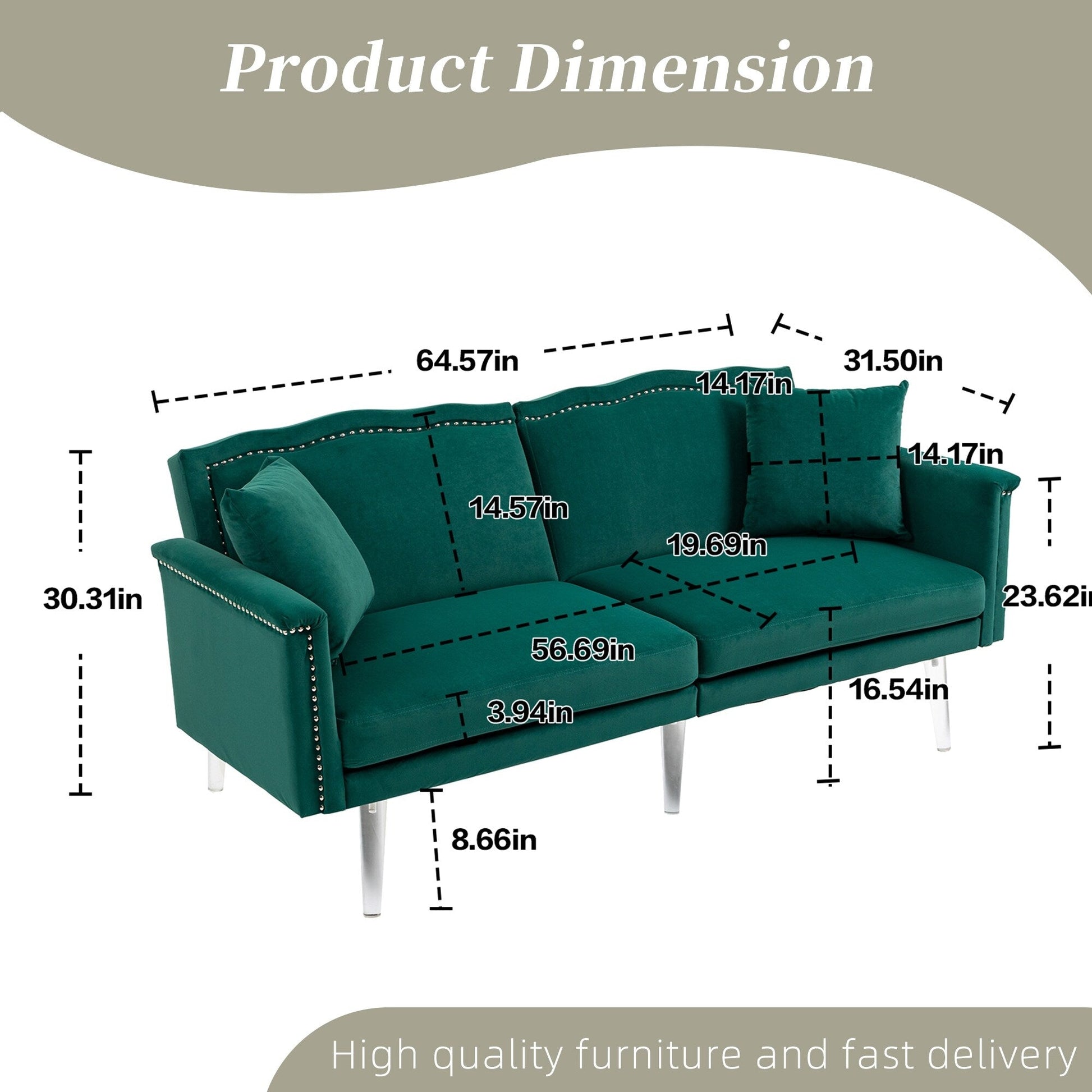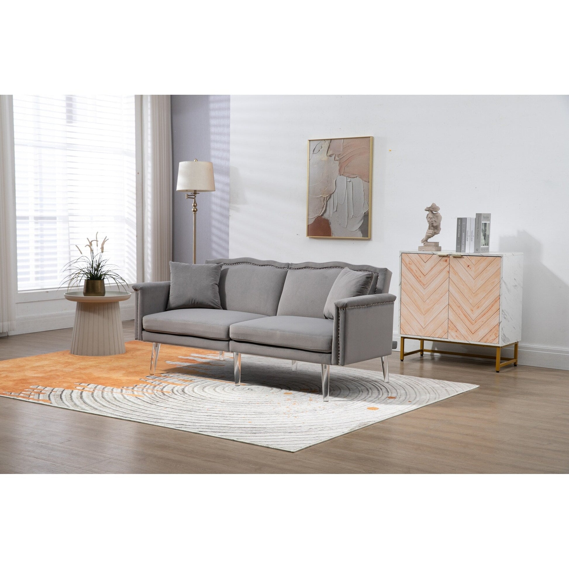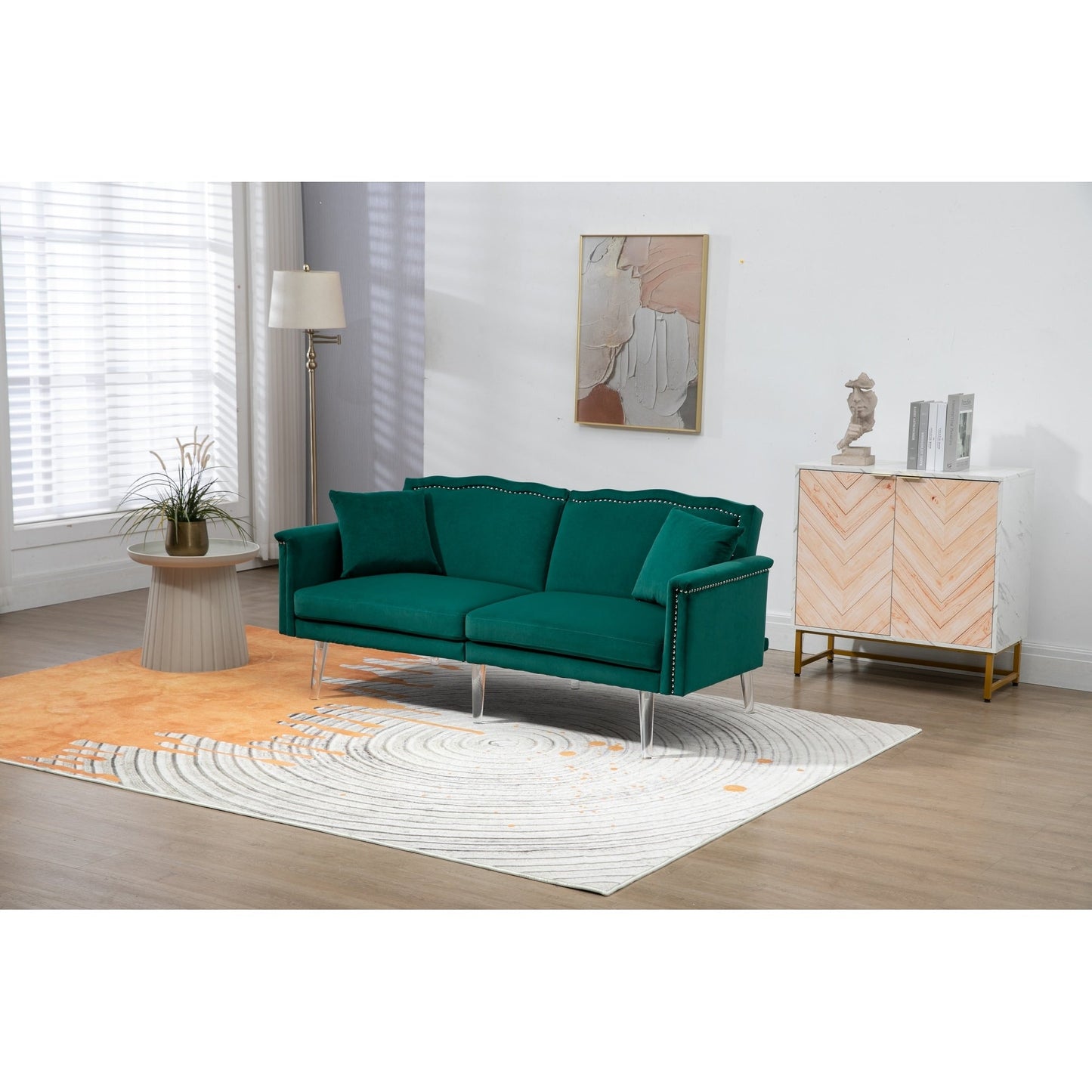 Velvet Upholstered Nailheads Loveseats Sleeper Sofa With Acrylic Feet