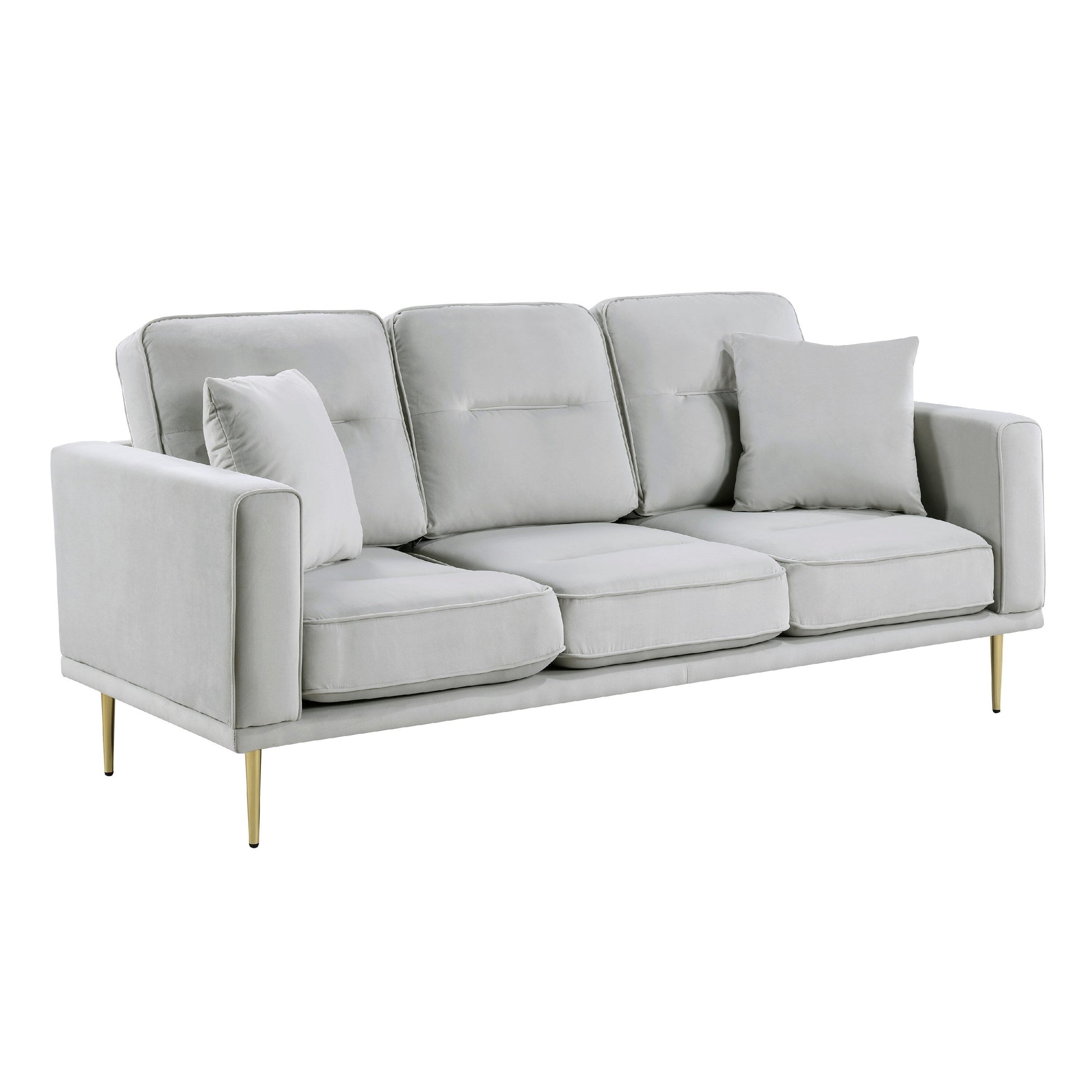 Voxo Sofa, Gray Velvet Padded Seat, Two Accent Pillows, 82 Inch