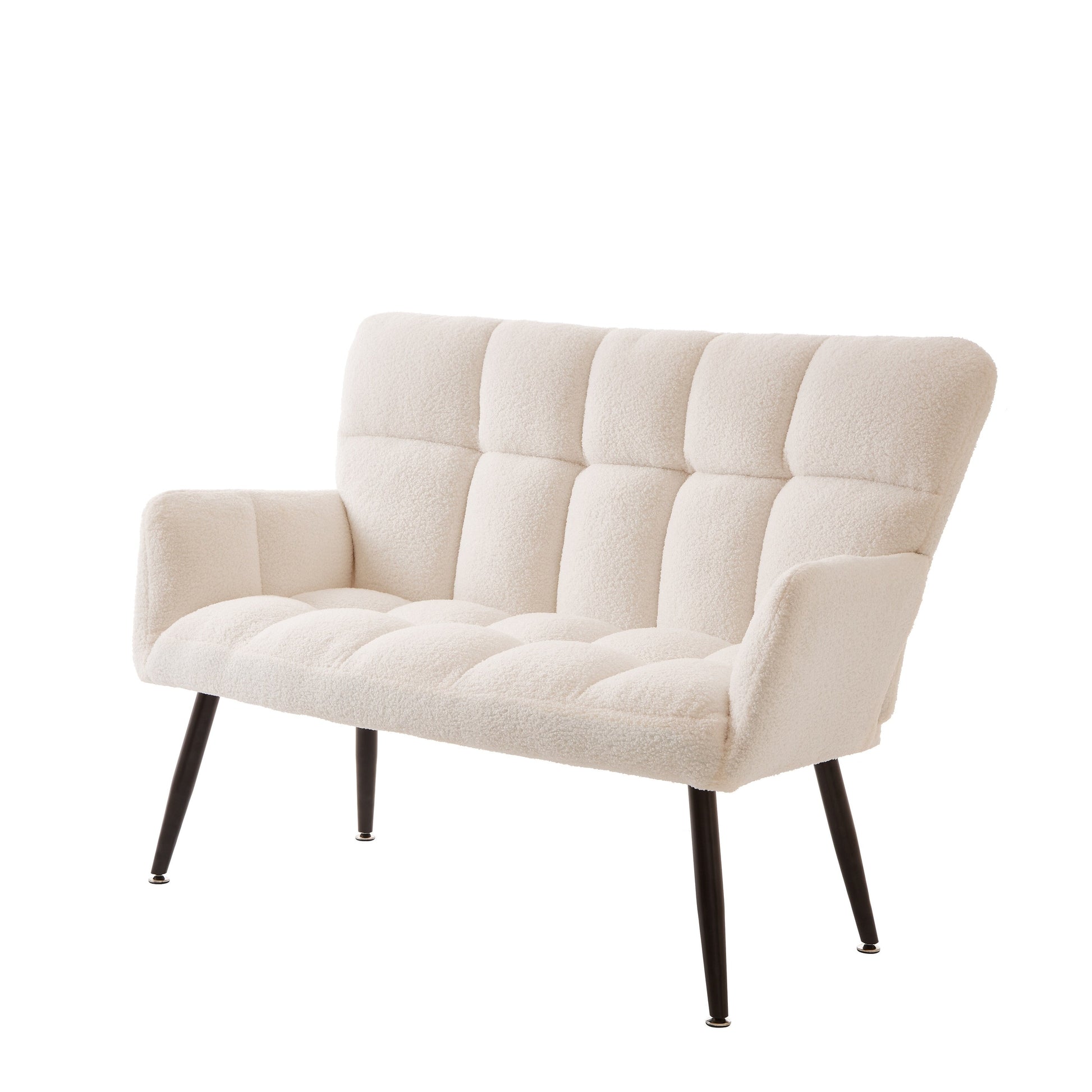 Elevate your home office or living space with our mini sofa. Made of teddy fabric with a hardwood frame, this loveseat combines comfort and durability. The fabric is not only comfortable but also resistant to pilling and fading, ensuring it looks and feels great for years to come. The stylish flared armrests and soft quilting back design add a touch of elegance and a leisurely vibe to your space. This mini couch is simple yet built to last, capable of bearing approximately 500 lbs. Its modern design makes it a versatile addition to any apartment or small place. Whether you're watching TV, reading a book, or just playing with your phone, this loveseat is a perfect choice. Compact in size, it measures 52.56' W x 28.15' D x 35.63' H, with a seat height of 35.63' and a seat depth of 19.29'. Please confirm that the size meets your needs before ordering. Assembly is easy and straightforward, making it a convenient option for those who frequently move furniture or change apartments. Enjoy the perfect blend of style and comfort with this mini sofa.