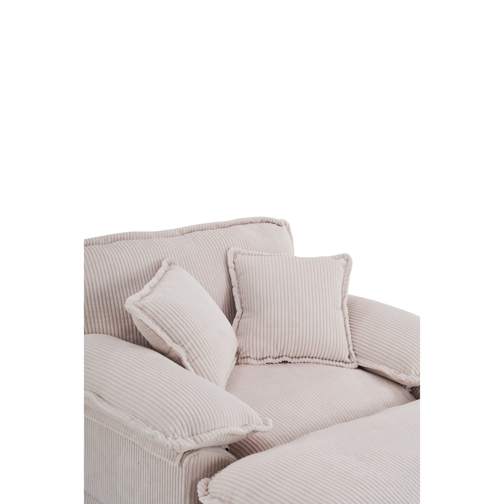 White 59.3 Corduroy Single Deep Seat Sofa with 2 Toss Pillows and Ottoman for Living Room