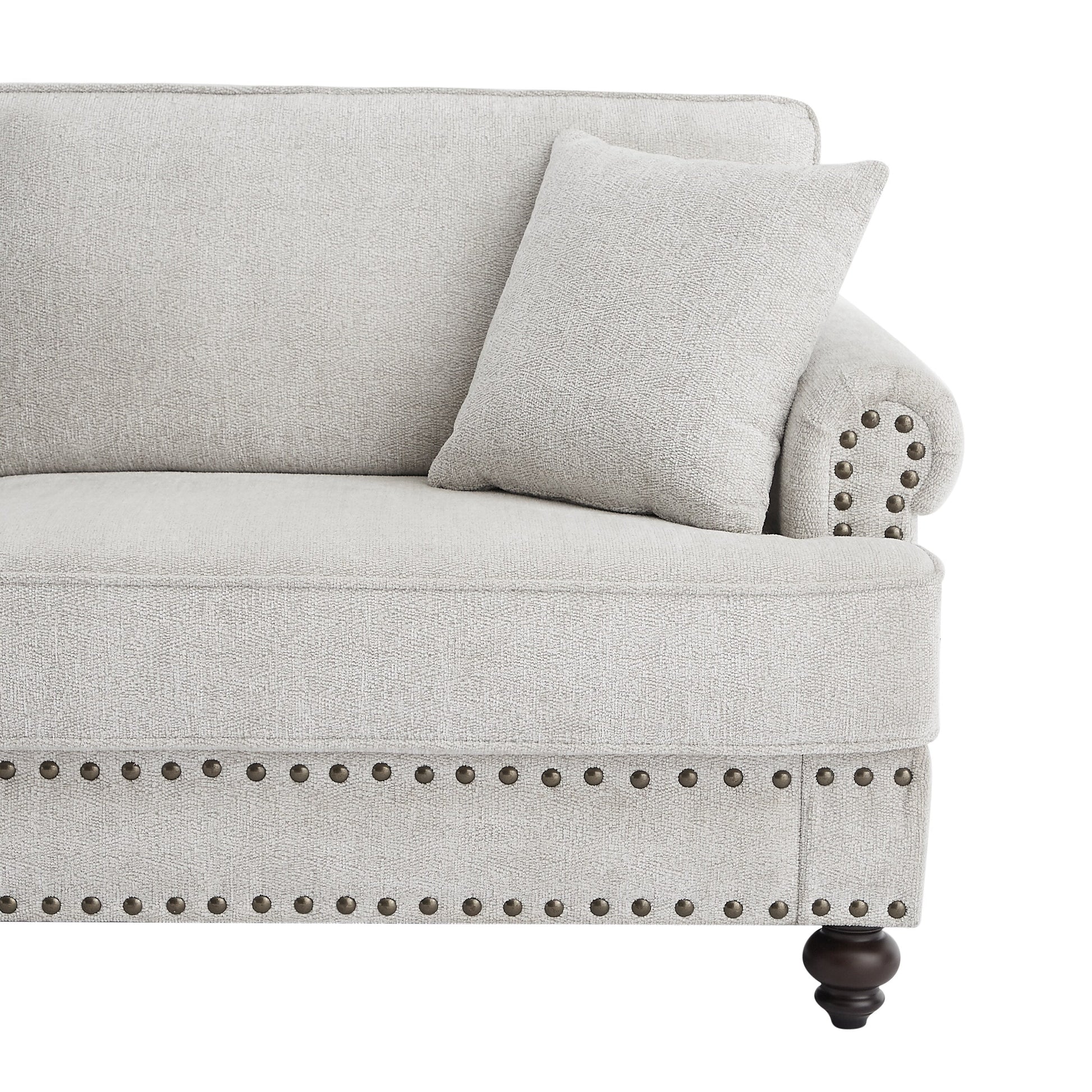 White 61'' Modern 2-Seater Sofa with Nailhead Trim, Pillows, and High-Density Cushions