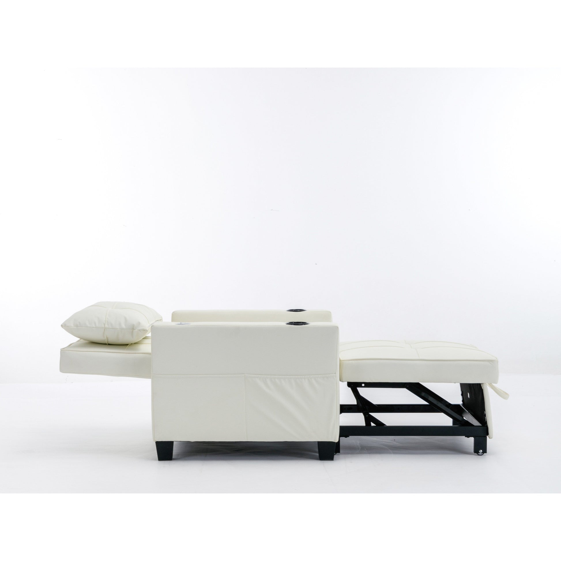 White 68.12 Faux Leather 3-in-1 Single Convertible Pull Out Sofa with USB Ports and Wear-resistantfor Living Room