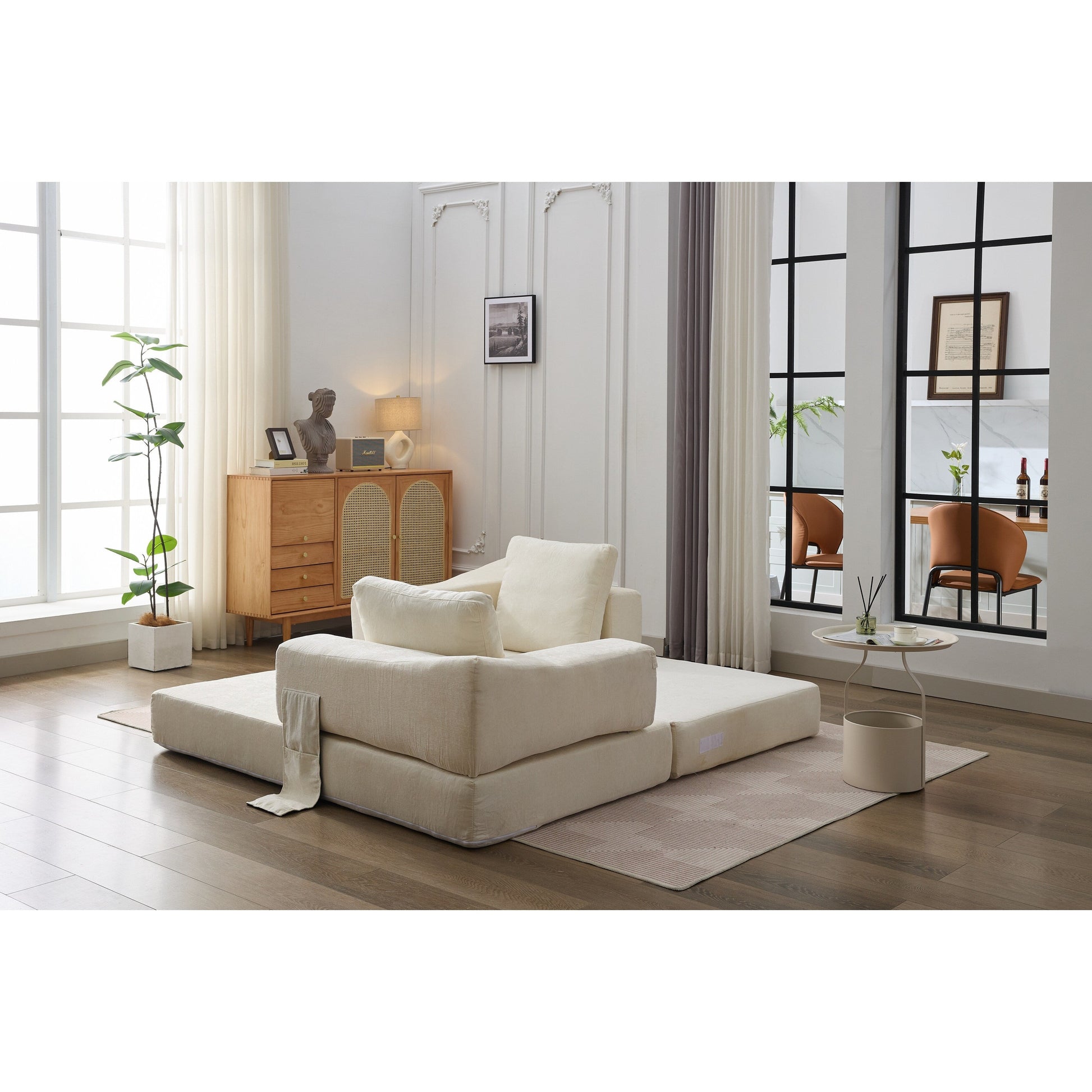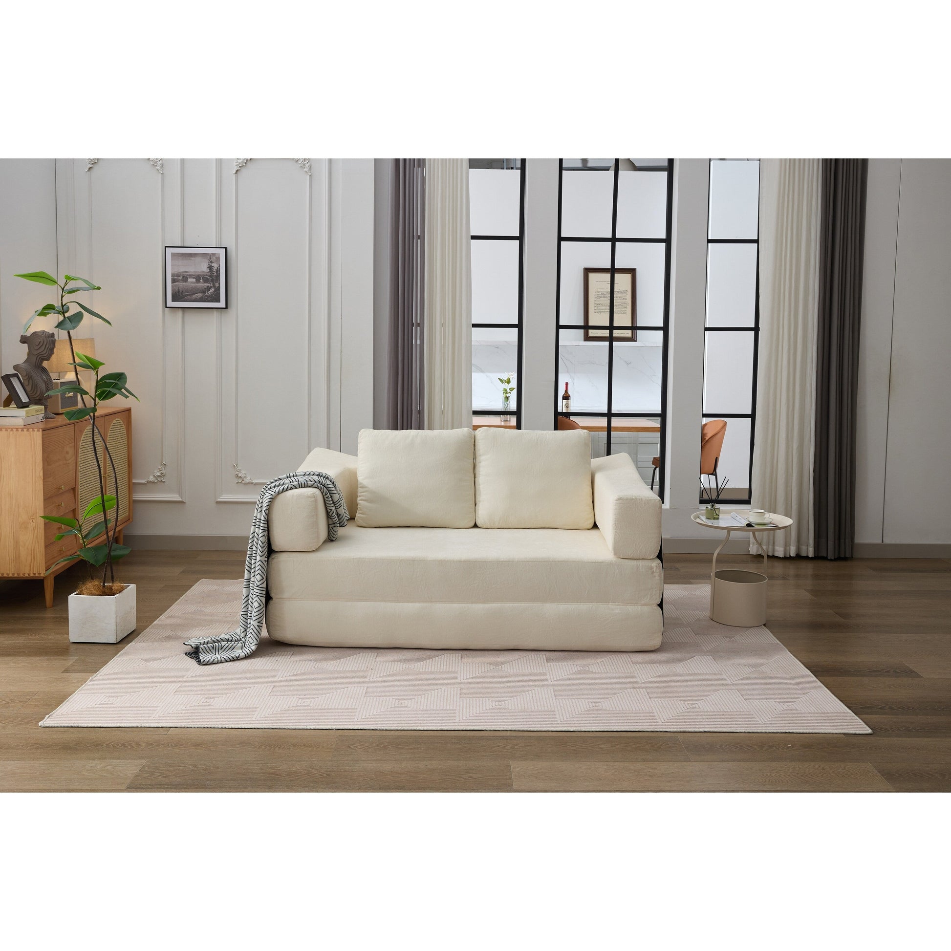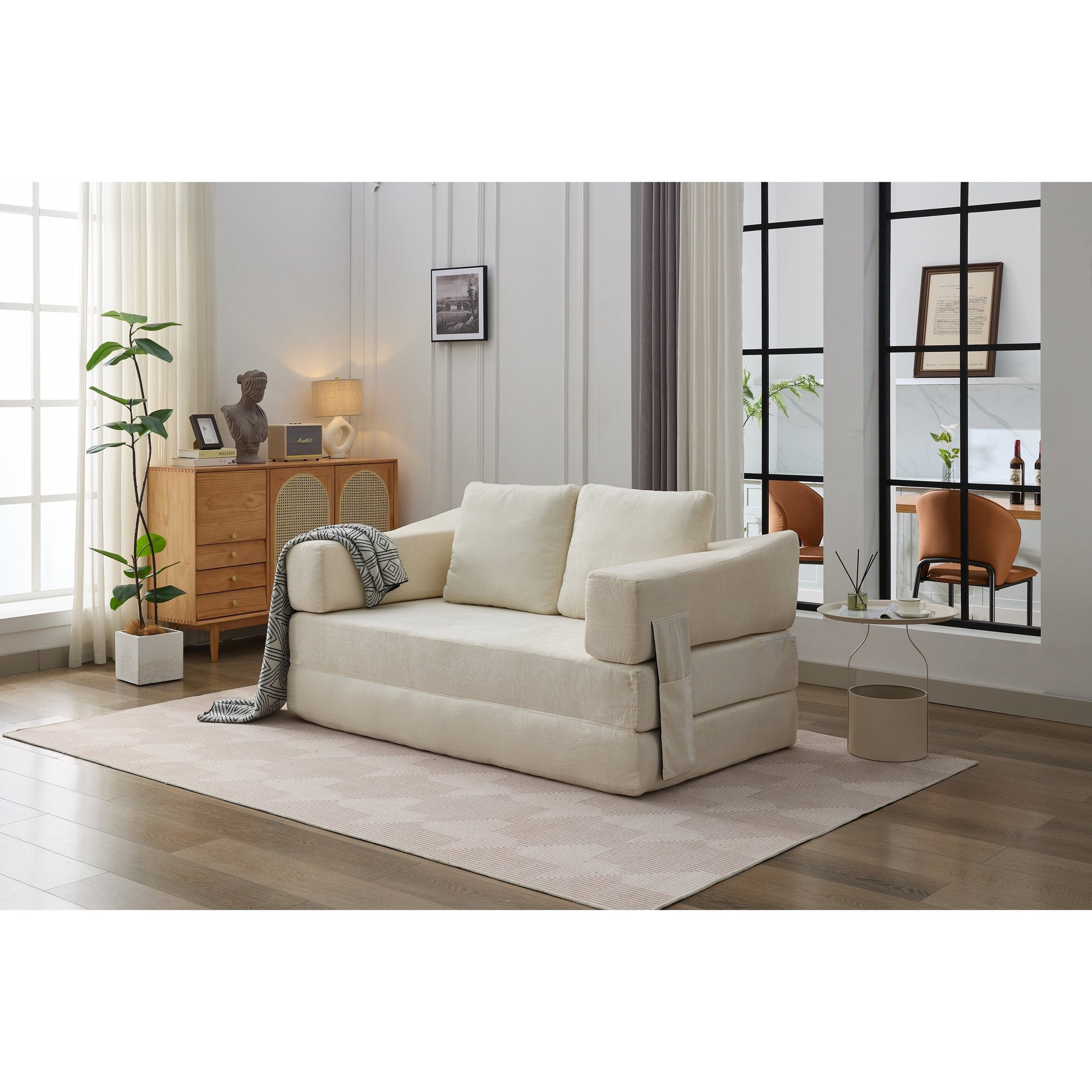 White Chenille Loveseat Fold-Out Floor Sofa Bed