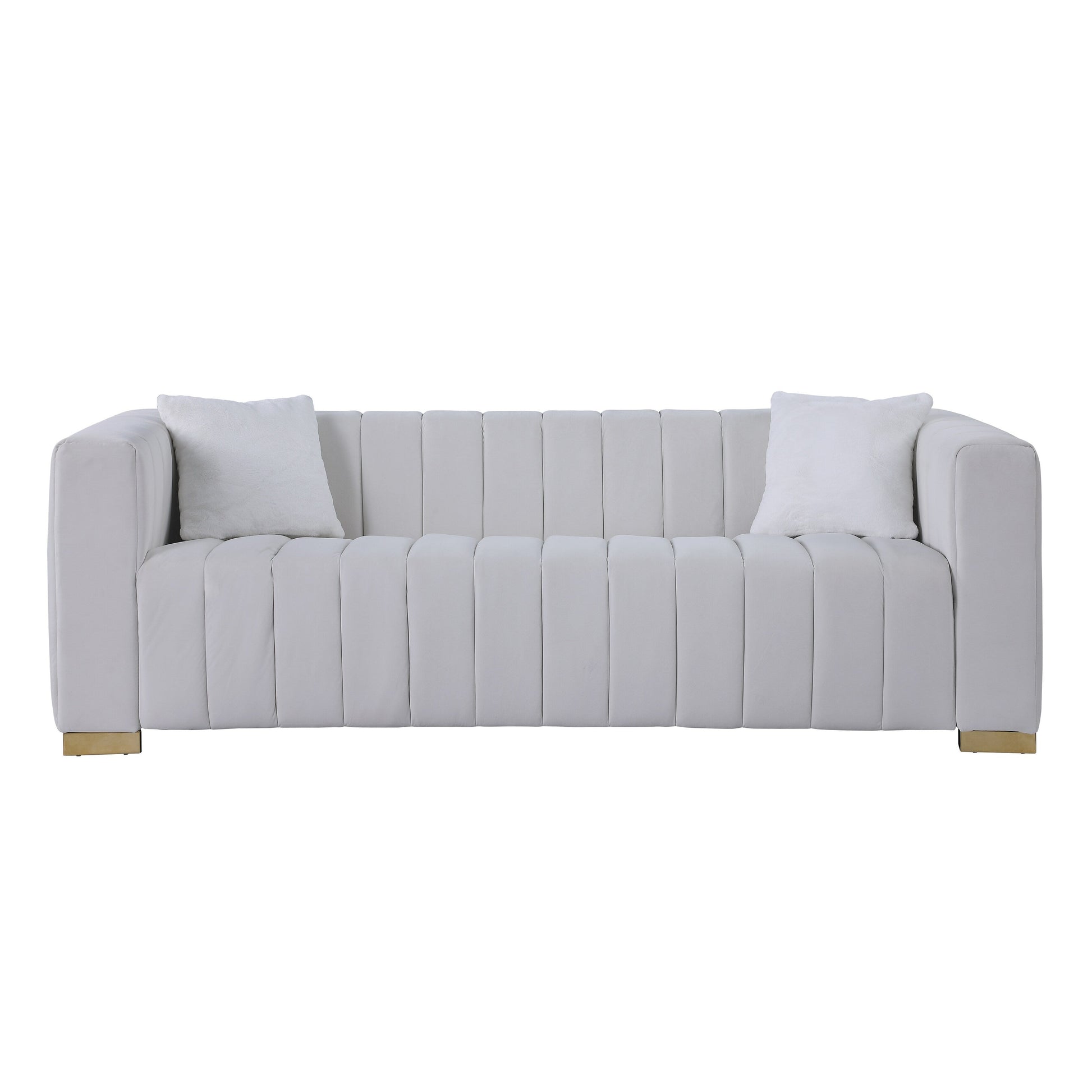 White Chesterfield 87.01 Velvet Channel Tufted 3-seater Sofa with Pillows for Living Room