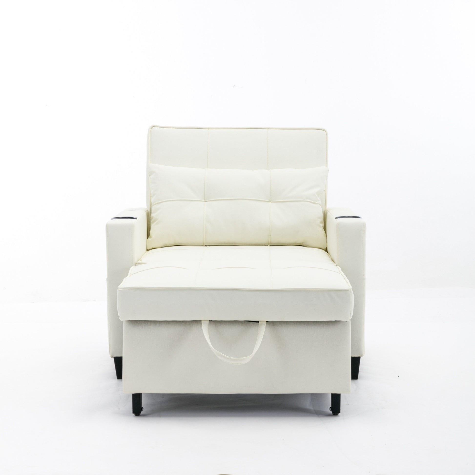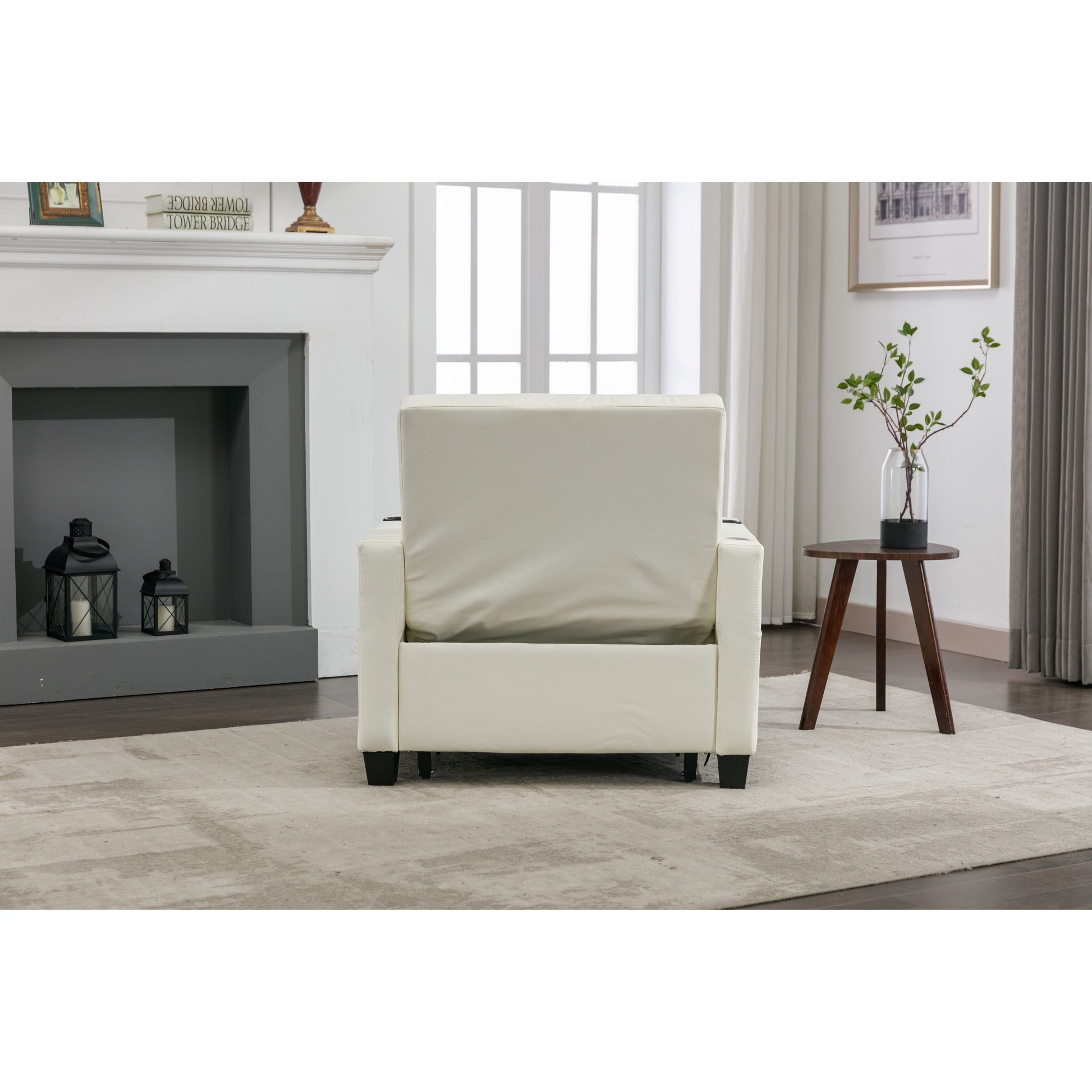 White Faux Leather Convertible Sofa Bed with USB Ports