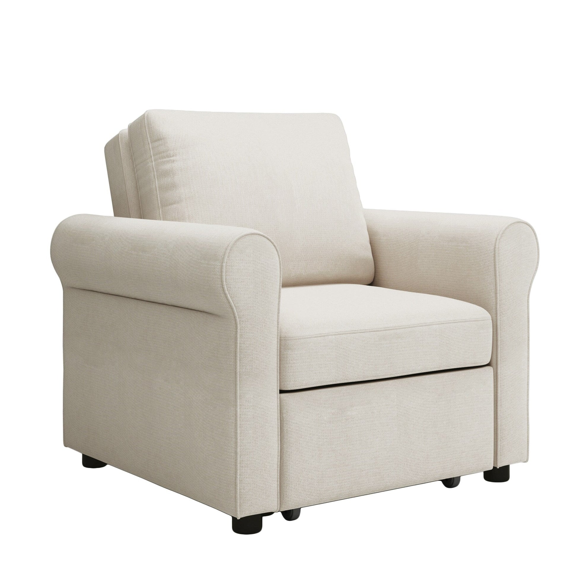 White Modern 34 3-in-1 Linen Convertible Single Sofa Bed with Adjust Backrest for Living Room