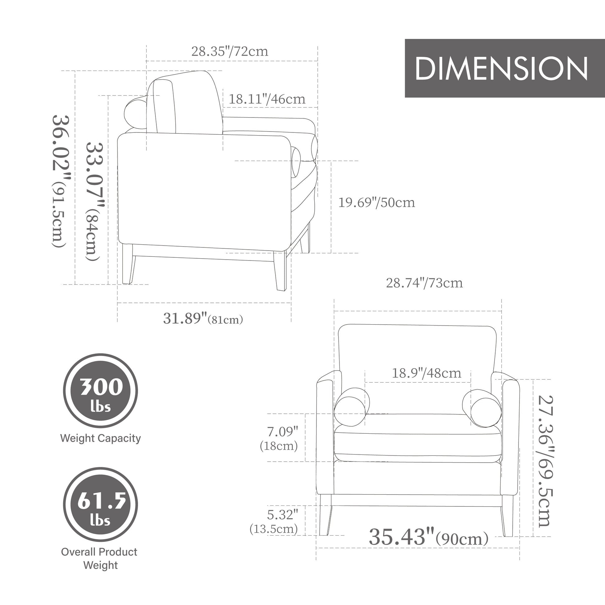 Wide Modern Farmhouse Performance Accent Chair with Natural Wood Legs,Armchair Single Sofa with Two Bolster Pillows