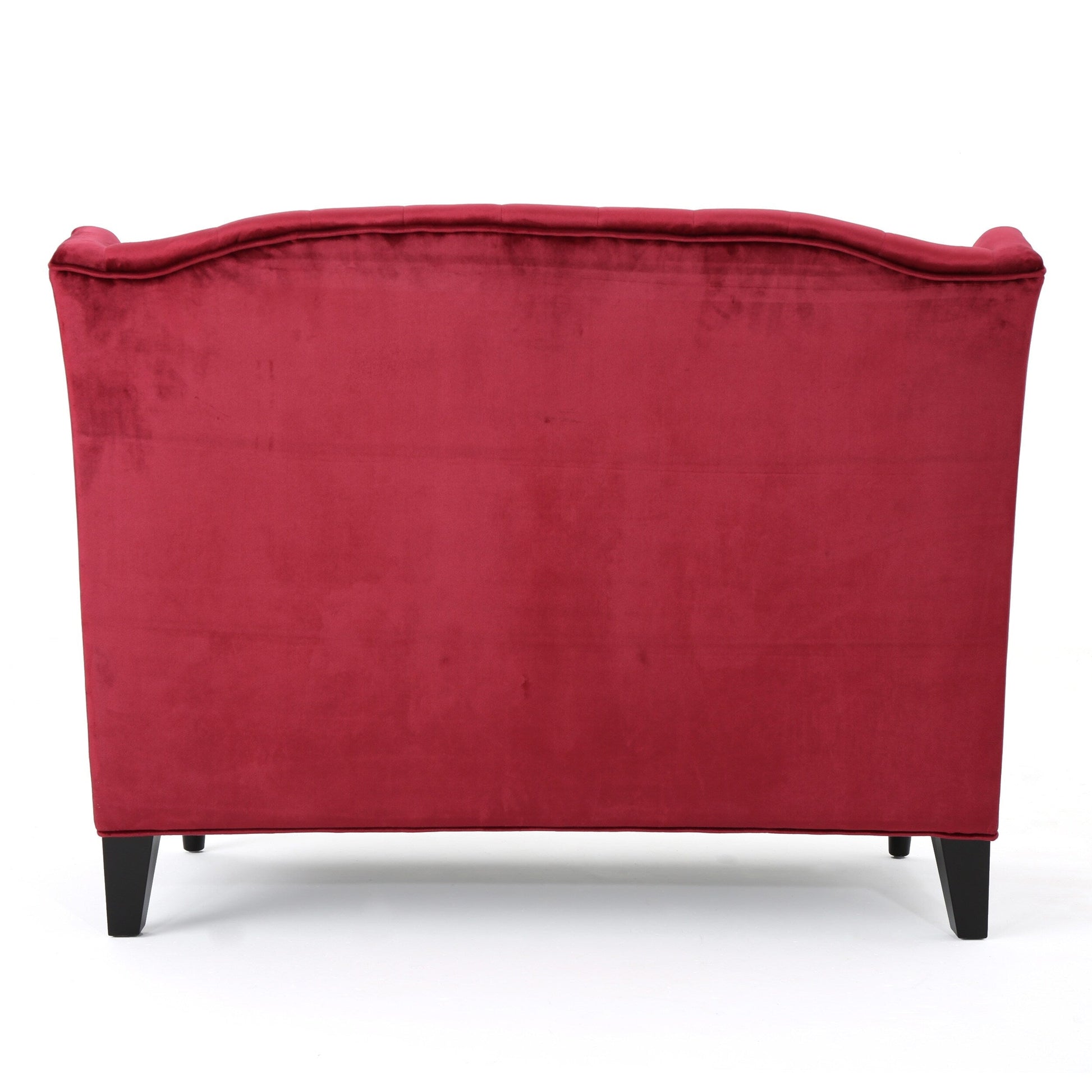 Wine Red Velvet Button Tufted High Wingback Loveseat Sofa