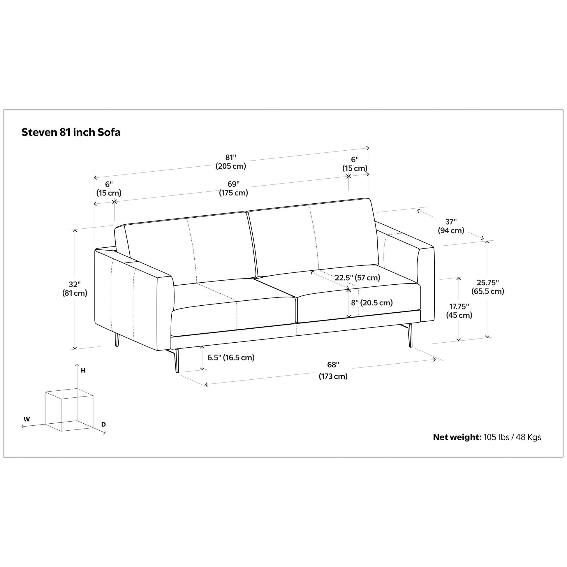 - Generously sized at 81' W x 37' D x 32' H, this handcrafted leather sofa comfortably seats three adults and supports up to 900 lbs, making it perfect for family gatherings or hosting guests.
