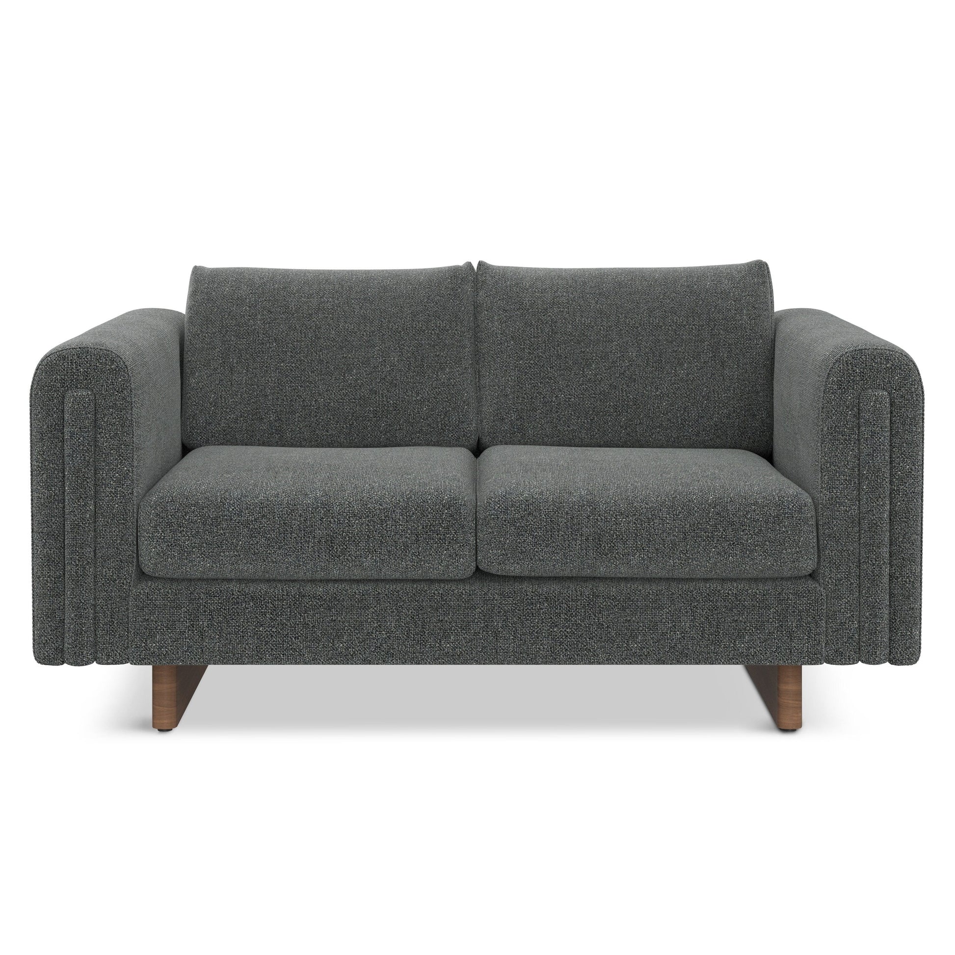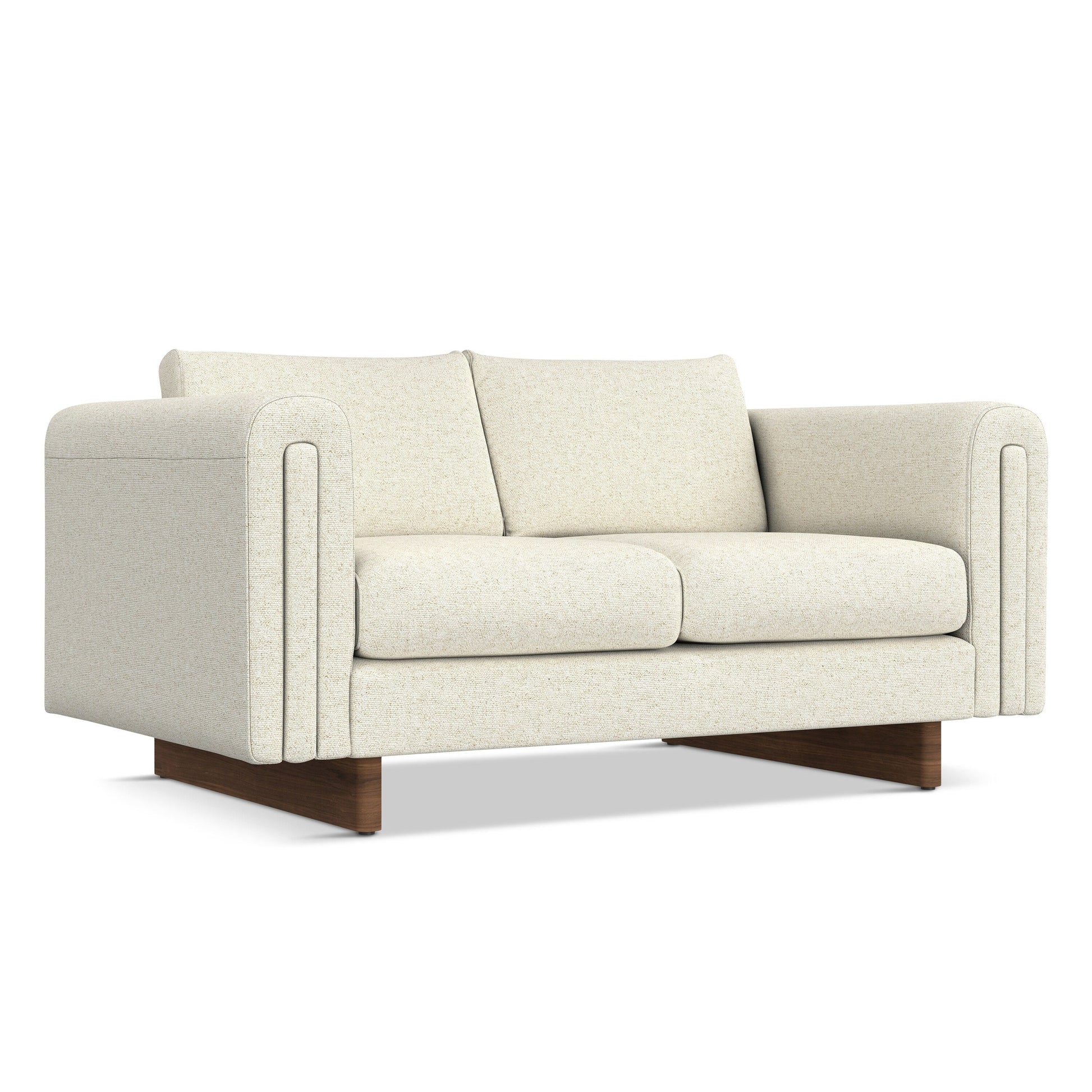 - Handcrafted, contemporary loveseat measures 61' W x 38' D x 30' H and supports up to 600 lbs, ideal for compact living spaces or small apartments