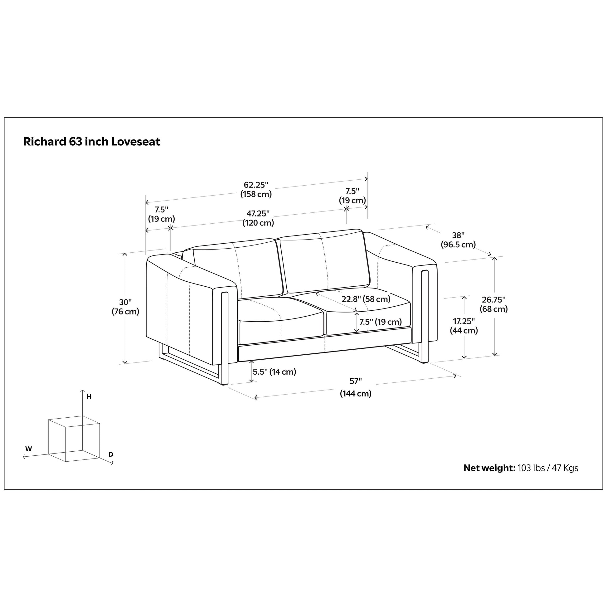 - Handcrafted with quality materials, this 63-inch wide loveseat (38' D x 30' H) comfortably seats two and supports up to 600 lbs, making it perfect for daily use in living rooms, bedrooms, or home offices