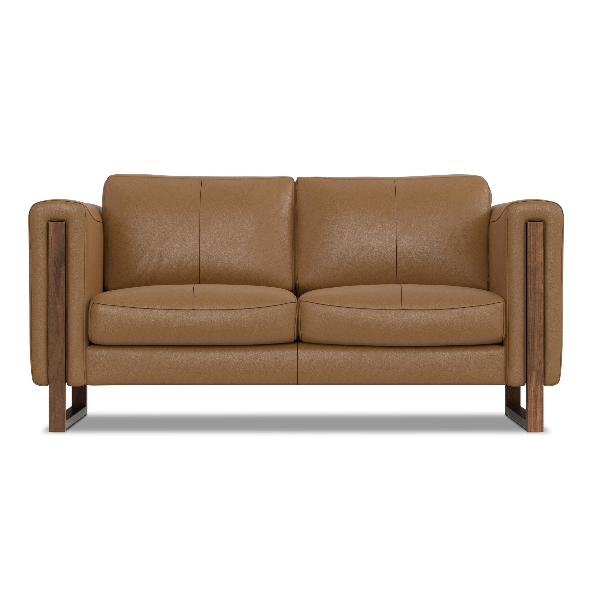 The WyndenHall Hillcrest 63-inch Leather Loveseat brings timeless style and exceptional comfort to your living space. Crafted with genuine semi-aniline leather, this compact two-seater couch exudes warmth and sophistication. Its solid wood frame and premium construction ensure durability for everyday use, making it ideal for cozy living rooms, home offices, or small apartments. The removable cushions and zip-off covers offer easy maintenance, while the adjustable legs provide stability on any surface. Whether you're curling up with a book or hosting intimate gatherings, the Hillcrest loveseat combines form and function to enhance your home's ambiance.