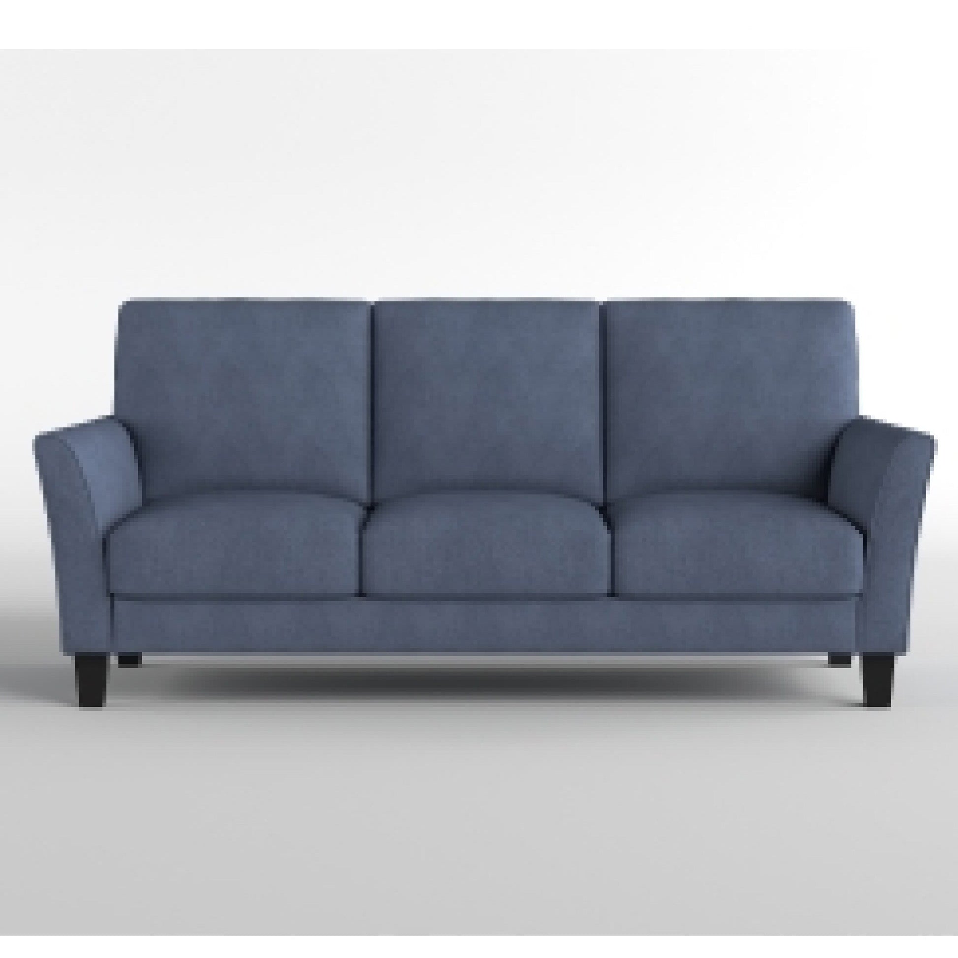 Xumo Sofa, Blue Fabric, 79 Inch, Black Tapered Wood Legs