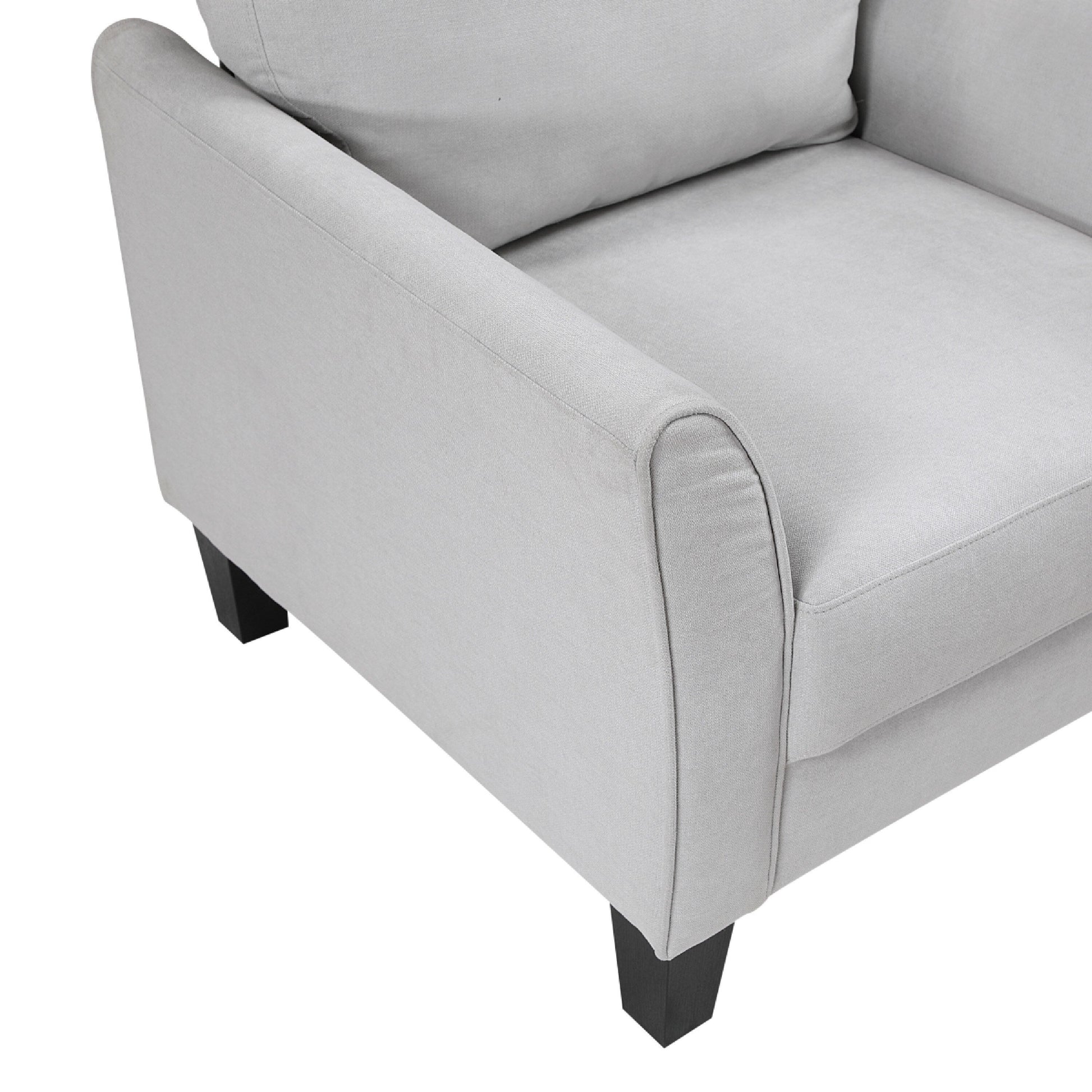 Bring casual elegance to your seating area with this textured gray sofa. Built with a solid wood and plywood frame, it features high-density foam padding and is upholstered in a rich, textured light gray fabric. Attached cushions, black faux wood-finished feet, and clean lines make this chair both stylish and functional. Explore our Xumo collection for more options.