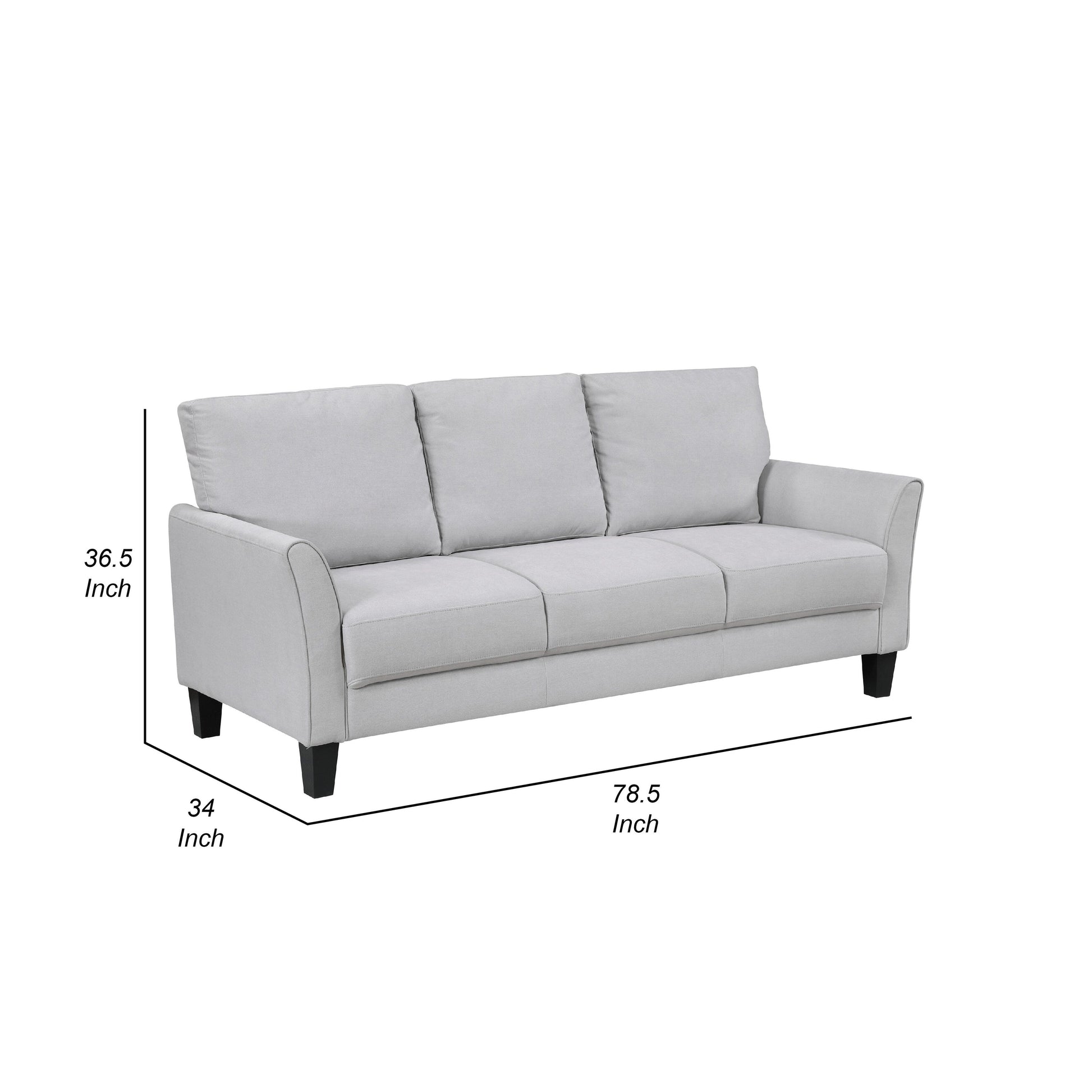 Xumo Sofa, Light Gray Fabric, 79 Inch, Black Tapered Wood Legs