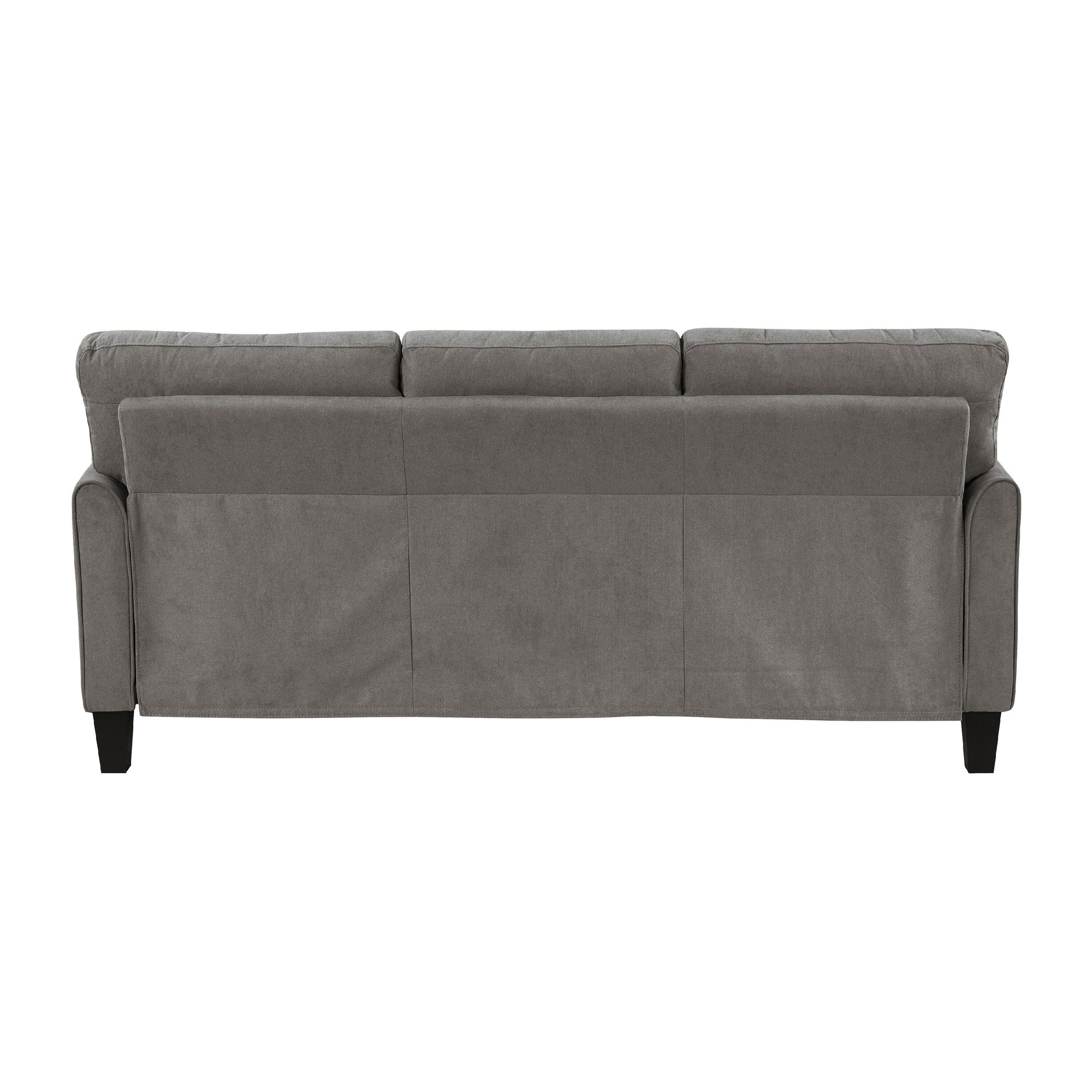 Bring casual elegance to your seating area with this textured taupe gray sofa. Built with a solid wood and plywood frame, it features high-density foam padding and is upholstered in a rich, textured gray fabric. Attached cushions, black faux wood-finished feet, and clean lines make this chair both stylish and functional. Explore our Xumo collection for more options.