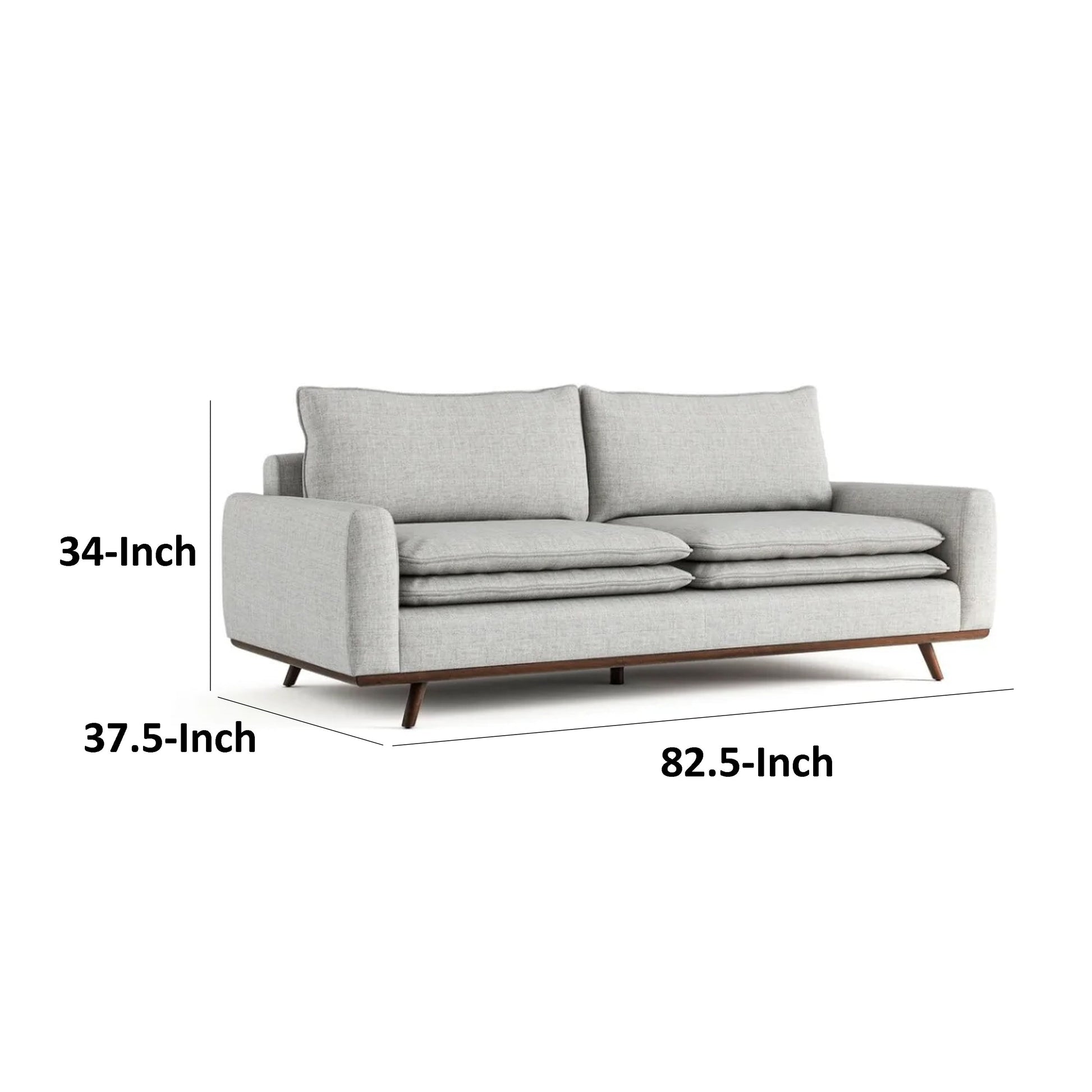 Yaana Sofa with Feather Blend Pillows, Dark Brown Wood, Gray 83 Inch