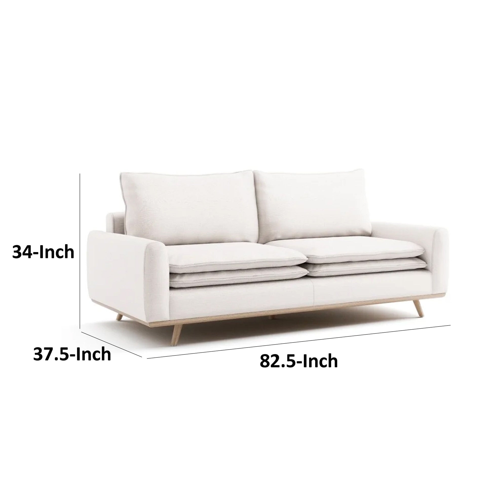 Elevate your space with this mid-century modern sofa, featuring a cotton-linen upholstery in a linen white color. The feather blend back pillow and high-density foam seat cushion provide comfort, while the oak brown solid wood frame and legs ensure durability. Designed for longevity, it boasts a webbing and zigzag spring suspension for support. Check out our Yaana collection for more options.