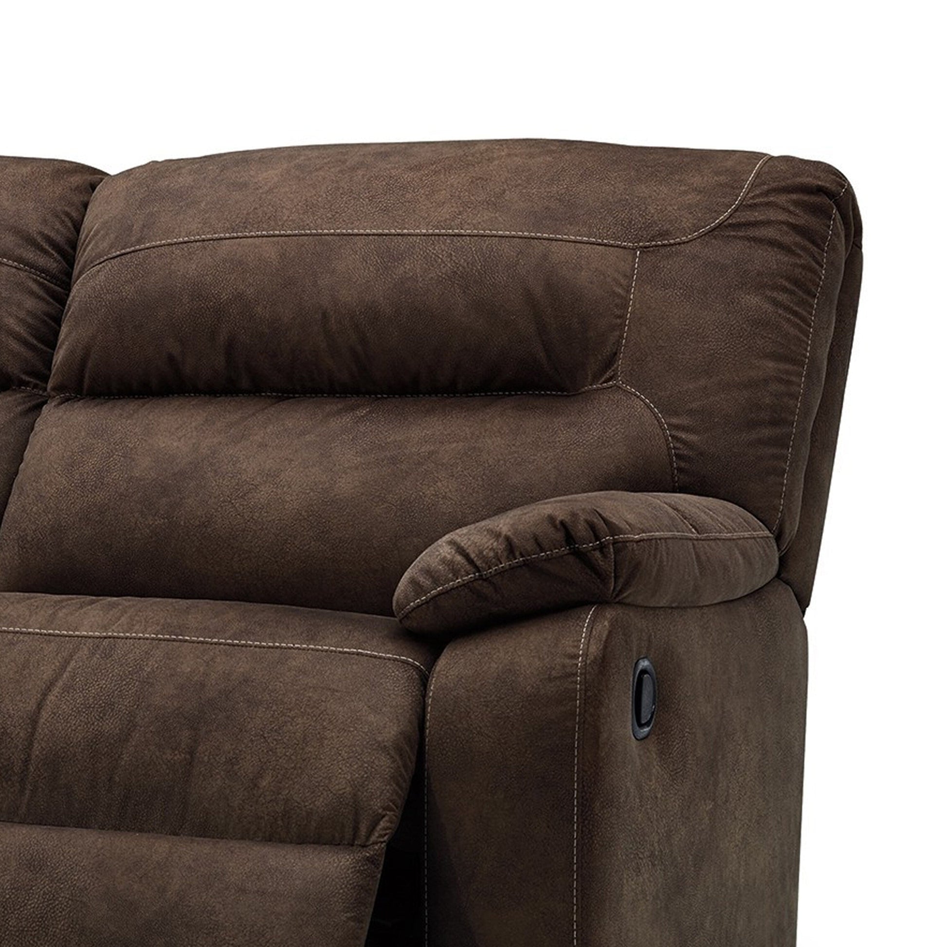 This two seat manual reclining sofa blends sleek design with ultimate relaxation. Its coffee brown faux leather and polyester blend upholstery enhances the aesthetic appeal of any room. The high-quality fabric is soft to the touch, offering a cozy seating experience. The pull-tab reclining motion provides effortless comfort, making it easy to unwind. Check out our Zano collection for more.