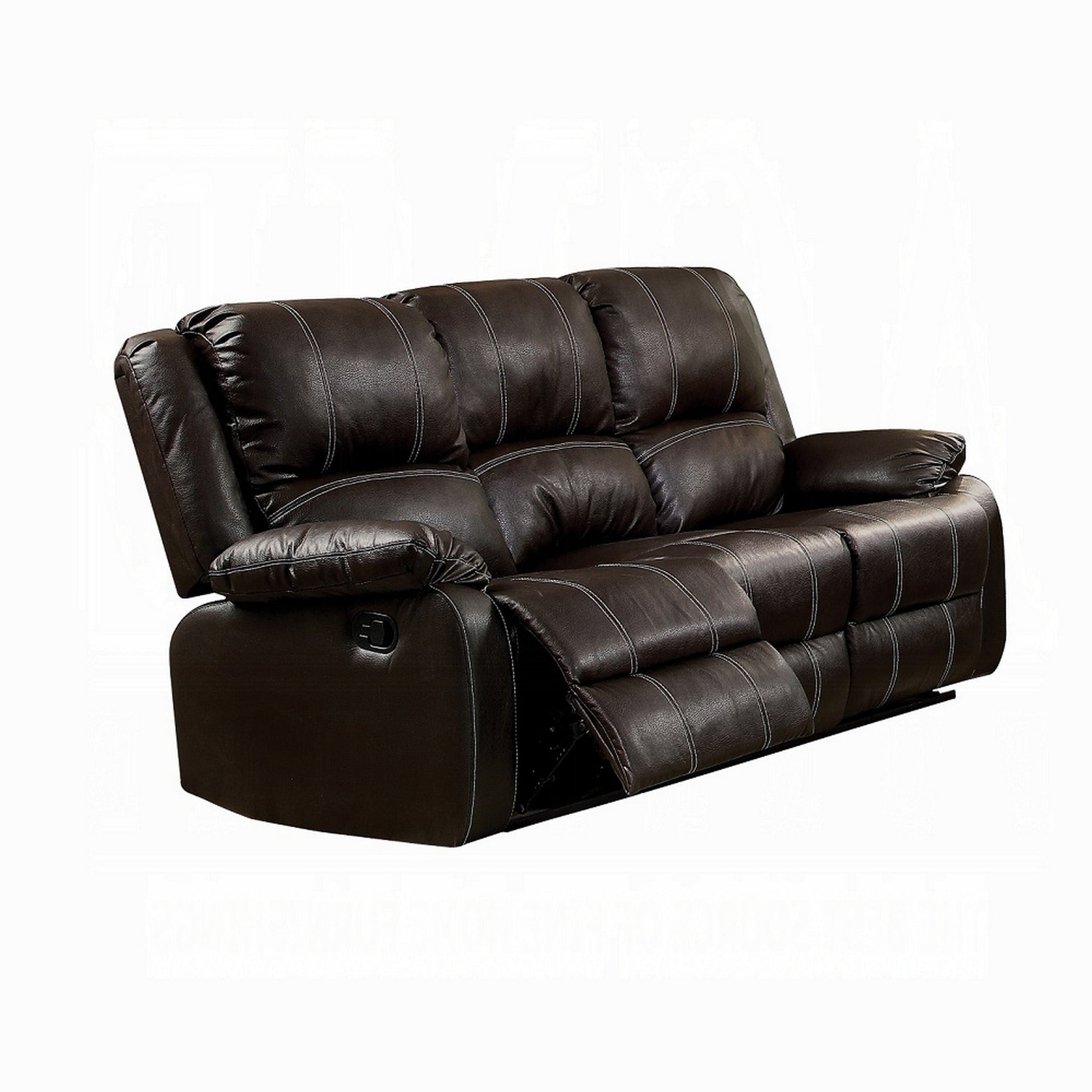 Enhance your living space with our Zuru motion recliner three-seater sofa. This recliner is crafted from durable metal and boasts a sleek design, creating a more open feel. It features a smooth motion reclining mechanism for effortless adjustments, plush pillow-tufted brown faux leather upholstery, and tight pillow-top armrests. Check out our Zuru collection for more.